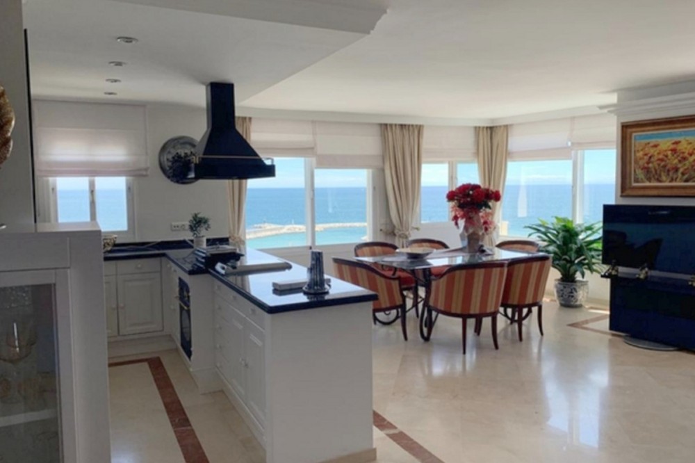 - Impressive duplex penthouse of 160 m2 in front of the beach with magnificent views of the sea and the port of Estepona. It is located in a secure and well-maintained urbanization with beautiful gardens, parks, two swimming pools and parking. The urbanization has maximum security with a guard that controls who accesses it. There is air conditioning, heating and elevator. The price is worth it. You will not find an equal apartment in the whole building. Penthouse, Estepona, Costa del Sol. 2 Bedrooms, 2 Bathrooms, Built 186 m². Setting : Beachfront, Town, Beachside, Port, Close To Shops, Close To Sea, Close To Town, Close To Schools, Marina, Close To Marina, Front Line Beach Complex. Orientation : South, South West. Condition : Excellent. Pool : Communal. Climate Control : Air Conditioning, Central Heating. Views : Sea, Port, Panoramic. Features : Lift, Fitted Wardrobes, Near Transport, Private Terrace, Storage Room, Marble Flooring, Double Glazing. Kitchen : Fully Fitted. Garden : Communal. Security : Gated Complex. Parking : Garage. Utilities : Electricity, Drinkable Water. Category : Beachfront, Holiday Homes, Investment.