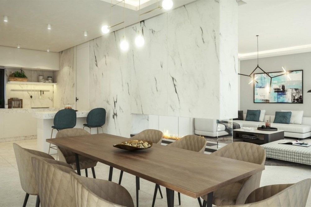 - 3 bedroom / 3 bathroom modern villas from 1.250,000 euros (excl. VAT) Ready for occupation end 2021! Contemporary complex of 40 single villas & semi-detached villas, located in Marbella East. Overlooking a beatiful golf course and panoramic sea views to the Mediterranean Sea. All the villas are SW oriented, to enjoy the sun all day. 14 of them will be in a gated private community, first line golf with beautiful views to the valleys of pine trees and cork oaks.The villas will have 3 levels: large basement with the possibility to do additional 1 to 3 bedrooms more depending the villa. Main floor with a huge open plan kitchen, large living & dining room, guest toilet, some ones with a bedroom with en suite bathroom (4 bedrooms villas), terrace/s, garden and swimming pool. On top floor we have always 3 bedrooms, each one with en suite bathroom and terrace/s. We create a mix of 7 types villas and semi-detached villas Andalusian style with modern lines to create this amazing Marbella life style. Each luxury villa will be built with high qualities and will have private pool, garage, under floor heating, fire place, kitchen fully equipped, air conditioning, alarm system, tropical garden.