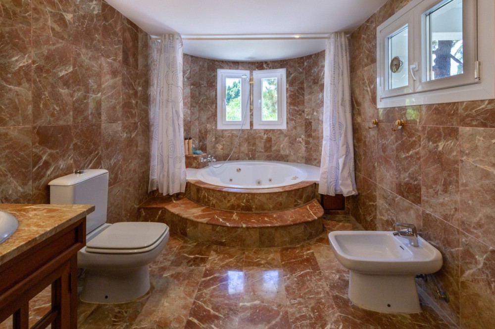 - Altos Reales is an exclusive municipality in Marbella, slightly above the Golden Mile, which has a 24 hour security service. "Safe and secure homes" With its lush green spaces and no through traffic, Altos Reales' location offers a peaceful getaway away from the noise and stress of modern life. The exclusive villa in Zones A is within walking distance of the beach, Marbella city center and just a few minutes drive from the international schools, medical care, designer shops and the excellent restaurants of Marbella and Puerto Banús. 5 Bedrooms, all en Suite