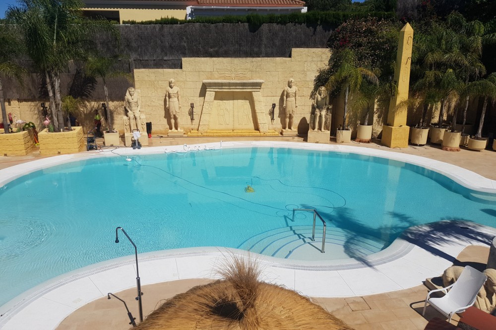 - Bespoke Villa Created with Passion and without Compromise on Quality and Engineering. A luxurious home situated in the tranquillity and privacy of Sotogrande Alto. Ten years in the making and built to the highest standards, this is much more than a home, it is a work of art. The main house is set over two levels with a total of 6 bedrooms, 6 bathrooms, study, cinema room, kitchen with dining area, additional kitchen with pantry for extra catering, laundry, dining room, main living area and semi basement. A grand entrance hall with a spectacular curved marble staircase leads you to the upper level, also accessible by the lift. The upper level has two bedrooms, where you will find the master suite with living area and dressing room, with detailed hand painted finishes on walls and ceilings. The fixtures and fittings throughout this home are of the highest qualities The semi basement homes the most exquisite entertainment area with hand painted murals and golden ornate statues decorating the Egyptian lounge and cocktail bar. On this level you also have a further two guest suites, decorated in fitting with the ancient Egyptian theme and a modern gymnasium. Could there possibly be more to this already fabulously unique home ... now to the "pièce de résistance". From the Egyptian lounge you have entry into a miniature replication of Her Majesty's Theatre London, complete with royal boxes and seating for 50 guests. Set up and ready to host the classic stage show of Phantom of the Opera, a personal favourite of the owner and designer of the is magnificent property. Here you will enjoy producing your own stage performances, hosting small concerts or use this amazing space as a cinema as it is also equipped with projector and full sound system. Having the A7 accesible makes travel easy, with Málaga airport an hour drive and Gibraltar reachable within 20 minutes. Local hot spots such as Marbella and Puerto Banús are only 30 minutes, and the exclusive port of Sotogrande with its stylish bars and restaurants, world renowned golf courses and polo fields are on your doorstep.