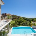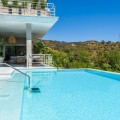 • This unique luxury, very modern high-tech villa yet embracing Andalusian charm, is located first line golf to the Santa Maria Golf course offering breathtaking sea views. This very spacious property, situated on a large plot of 1335m2, is fully renovated to the highest standards. It offers seven bedrooms, seven bathrooms and a guest toilet; a home cinema, gym and spa. Due to its hillside location, the villa is divided over five floors which are all accessible via the indoor elevator. The driveway has a carport with solar panels, with enough space for two cars. On the street level, the garage for another two cars is located with an electric car charger, as well as one of the main entrances to the house. On this floor the storeroom and laundry room are located. The outdoor area offers an infinity pool, outdoor kitchen and lounge areas. It has been fully renovated, equipped with the latest technology and is energy efficient.
