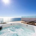 - Would you like to live just few steps from the beach, feel the waves at your terrace and enjoy your own roof top solarium, look over the rooftops and feel the sea breeze? This exclusive penthouse apartment is located in one of the finest new builds called “The Wave Collection”. It's only 25m from the sea side promenade, enjoying spectacular sea views of the Mediterranean sea and conveniently located between Fuengirola and Benalmadena in the most prestigious residential areas in the region. A top luxury property to enjoy all year round in an excellent location close to everything. The property has a big open living room and kitchen looking directly towards the sea. There are two bedrooms. The master bedroom has an ensuite bathroom, but there is also a second guest bathroom. You can access the big terrace with an astonishing sea view both from the living room and from your master bedroom. Stylish glass staircase takes you to the rooftop terrace where you find a massive area with room for endless possibilities for your outdoor life under the sun. The rooftop has a jacuzzi and an amazing outdoor kitchen and loads of space for a luxury chill out area. The area is partly covered by a big pergola, and one could glass that area in order to created a covered chill out space. Only high quality building materials have been used in this development. For your convenience, there is an underfloor heating in the bathrooms and fibre optics internet cable connection. It’s an ideal place to work distantly and enjoy outdoor life. This home also enjoys a home automation and energy efficiency management system installed with the following features: Intercom, floding detector with automatic water stop, smoke detector, notice of electronic supply cut, heating and aircon cut. The community consists of only 72 high-end properties and there is an amazing pool area, luxury lobby and a private business area for residents. The Wave beach club is just next to the property and has a heated swimming pool where you can swim all year round. You can find paddle, tennis, spa and gym at the Hilton Hotel Resort. There are plenty of restaurants nearby and you can enjoy both Benalmadena and Fuengirola beach promenades. The property comes with two underground garage spaces. It also includes a storage room. The location is excellent next to the beach. You can also find the Carvajal train station some 100m away, where you have the electric train taking you conveniently to the airport or the buzzing Malaga City.