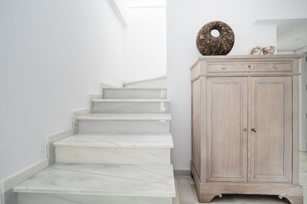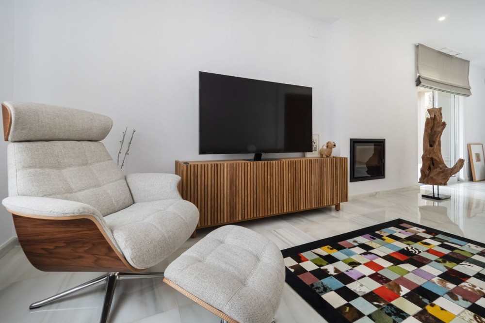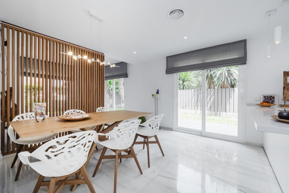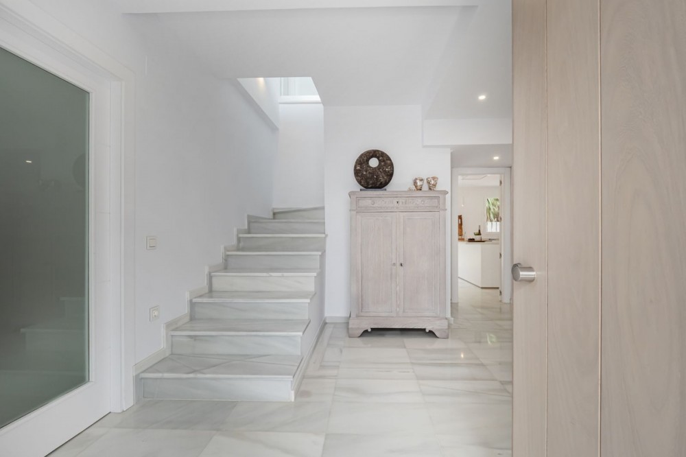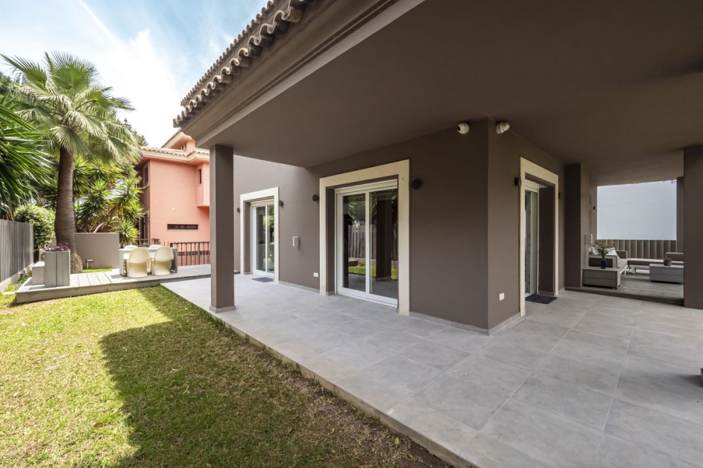 - LOCATION, LOCATION, LOCATION. This Dwelling location is an absolute gift, a mere 50m from the sandy Elviria beaches, next to the most glamorous beach bars, eg. "La Plage de Casanis", 5* hotel beach clubs; traditional chiringuitos with the true Andalusian flavours, and all that with abundance of amenities and services such as pharmacy, schools, supermarkets, etc. ... everything one might need to live as a permanent home, or as a holiday property. This independent Villa plot amounts 518sqm, recently renovated to the highest standards both in building materials and construction, with attention to detail (the whole electricity system has been updated and improved, replacement of all the lightning devices, new A/C machinery at the ground floor, changes in the layout of the stairs at the basement to create a new room and a profuse variety of improvements have been made in these renovation works); the house adds up to 334sqm built plus a 43sqm partially covered terrace and a ground floor porch of 48sqm. Finally, a new pool has been built giving the property the icing on the cake. The home is distributed as follows: Entry hall with access to an ample living room with access to the terrace and joined to the dining area and the open plan kitchen with island. Besides, a bedroom with bathroom plus a guest restroom. On the first floor, three complete bedrooms with en suite bathrooms, all of them facing outside. On the basement, room for 4-5 cars, office space/bedroom, laundry room, bathroom and storage room. The property includes an own well. Due to location and features, this is a wise investment for a permanent home or as a holiday home with a huge potential for holiday rental.