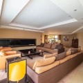 - Luxury villa itself is located in a closed and gated community, at the end of a cul-de-sac and at the entrance of the world renown Club Reserva de Sotogrande Golf Cours Lower Floor The lower floor consists on one side of the house for housekeeping quarters with living room, kitchenette and separate toilet, bedroom, bathroom and spacious patio. In between is a 6 car garage and hobby room. The south side has a cinema room, massage room, wine cellar, pool/bar room as well as an extensive gym area, inside jacuzzi, Klafs Swedish sauna with infrared. Upper Floor The upper floor consists of all the 5 bedrooms with ensuite bathrooms, each properly designed with refreshing ideas and little surprises. The east wing is reserved for the Master Suite, consisting of the bedroom with panoramic window to the sea, rising tv screen in front of the bed, ensuite bathroom with terrace and outdoor shower. The walk-in closet is custom designed with wooden cabinets. There are safety doors and secret separations for children's safety. Ground Floor Entering the ground floor, the massive entrance door gives the sense of proportion that is kept throughout this mansion. There is a long corridor/gallery connecting the east wing with the tremendous living area and the study to the west wing's dining area. Sliding doors separating the dining room and the spacious kitchen with top of the line equipment. Behind is the wet kitchen with a walk-in freezer, larder room, separate laundry room and the designed guest wash room. Outside The main rooms, decorated with the nicest Georgetti furniture and kitchen all have access to the outdoor with certain areas having the Barragan-specific strong colours. Bright walls accentuate the space on the terraces near the Koi pond and the sun protected outside BBQ area, which connects to a split level garden with fountain and strong color wall surrounding, protected to wind and offering total privacy. The infinity swimming pool with stunning Siccis mosaic, IPE wooden terrace and Mexican style hut. On sunny periods the outside blends with the inside, the lights and shadows play like an artist canvas. The most dramatic style part of this mansion is the spacious outdoor living area with glass roof and electric sculpted lattice shutters which play with ever changing quality of light and shade from roof and front part separating the garden without taking away the sea view. Concept The concept of this Mansion is inspired on the great Mexican architect Louis Barragan and the Californian architect Ricardo LEGORETTA, but effectively designed and fully decorated by "Femont-Galvan designers" from Marbella. This unique luxury Mansion is located south facing the extensive coastline with splendid views to the sea and the African border and surrounded by the famous 18 holes golfcours "La Reserva de Sotogrande" and neighbor to the "Valderama" championship course.