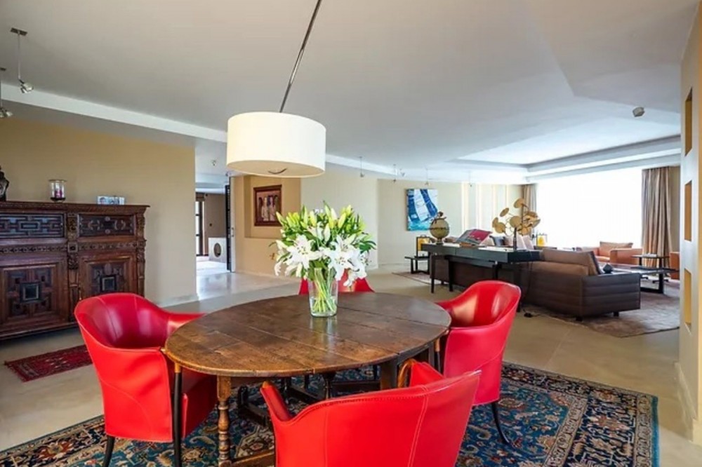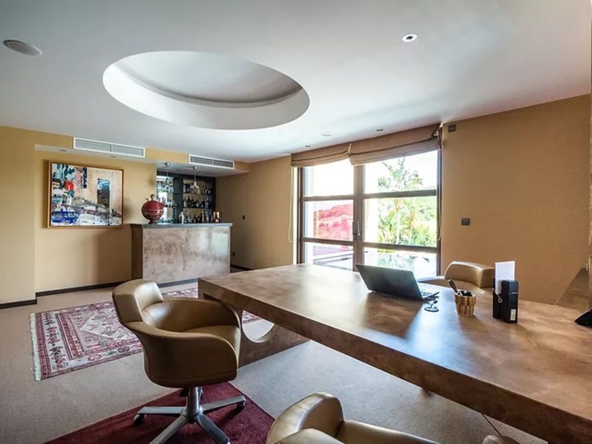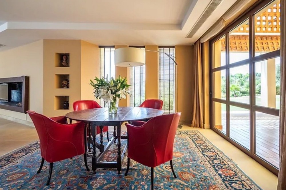 - Luxury villa itself is located in a closed and gated community, at the end of a cul-de-sac and at the entrance of the world renown Club Reserva de Sotogrande Golf Cours Lower Floor The lower floor consists on one side of the house for housekeeping quarters with living room, kitchenette and separate toilet, bedroom, bathroom and spacious patio. In between is a 6 car garage and hobby room. The south side has a cinema room, massage room, wine cellar, pool/bar room as well as an extensive gym area, inside jacuzzi, Klafs Swedish sauna with infrared. Upper Floor The upper floor consists of all the 5 bedrooms with ensuite bathrooms, each properly designed with refreshing ideas and little surprises. The east wing is reserved for the Master Suite, consisting of the bedroom with panoramic window to the sea, rising tv screen in front of the bed, ensuite bathroom with terrace and outdoor shower. The walk-in closet is custom designed with wooden cabinets. There are safety doors and secret separations for children's safety. Ground Floor Entering the ground floor, the massive entrance door gives the sense of proportion that is kept throughout this mansion. There is a long corridor/gallery connecting the east wing with the tremendous living area and the study to the west wing's dining area. Sliding doors separating the dining room and the spacious kitchen with top of the line equipment. Behind is the wet kitchen with a walk-in freezer, larder room, separate laundry room and the designed guest wash room. Outside The main rooms, decorated with the nicest Georgetti furniture and kitchen all have access to the outdoor with certain areas having the Barragan-specific strong colours. Bright walls accentuate the space on the terraces near the Koi pond and the sun protected outside BBQ area, which connects to a split level garden with fountain and strong color wall surrounding, protected to wind and offering total privacy. The infinity swimming pool with stunning Siccis mosaic, IPE wooden terrace and Mexican style hut. On sunny periods the outside blends with the inside, the lights and shadows play like an artist canvas. The most dramatic style part of this mansion is the spacious outdoor living area with glass roof and electric sculpted lattice shutters which play with ever changing quality of light and shade from roof and front part separating the garden without taking away the sea view. Concept The concept of this Mansion is inspired on the great Mexican architect Louis Barragan and the Californian architect Ricardo LEGORETTA, but effectively designed and fully decorated by "Femont-Galvan designers" from Marbella. This unique luxury Mansion is located south facing the extensive coastline with splendid views to the sea and the African border and surrounded by the famous 18 holes golfcours "La Reserva de Sotogrande" and neighbor to the "Valderama" championship course.