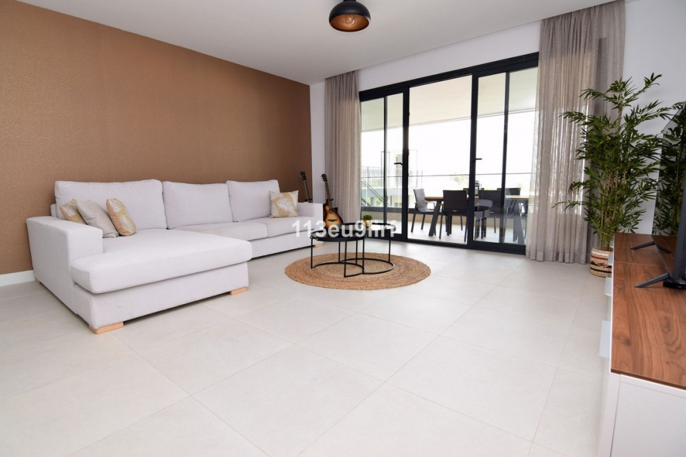 - Situated in Las Mesas, just outside the center of Estepona, this spacious luxury apartment offers peace and tranquility but is still close to the beach, port and city center. It consists of a large living/dining room, a fully equipped kitchen with adjacent utility room, the en suite master bedroom and two more bedrooms sharing a shower room. Additionally there is a covered front terrace with sea views and a small patio at the back. Underground parking space for one car and storage room. The complex with video surveillance is extremely well maintained, with tropical gardens and a beautiful pool. Heated indoor pool and gym (400 meter from the apartment). Air conditioning hot & cold, high speed internet. From the apartment it only takes 15 minutes to walk to Estepona port and the beach and 10 minutes to a large supermarket.