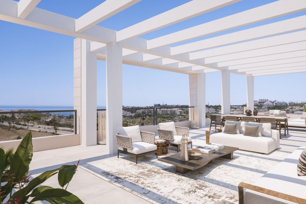 - New Development: Prices from €352,430 to €516,450. [Bedrooms: 2] [Bathrooms: 2] [Built size: 96m2 - 99m2]. New residential in Mijas Costa, Malaga. The private urbanization has 54 homes with 2 and 3 bedrooms distributed in 3 blocks, 3 stories high, including penthouses with large terraces that will enjoy magnificent views of the golf course. Very bright homes with spacious living rooms with integrated kitchens, contemporary design and created to enjoy privacy and proximity to golf. The common areas have swimming pools and well-kept gardens to enjoy the wonderful atmosphere of the area. It is located in a quiet area on the first line of the Calanova Golf Club golf course. The residential is located just 3 kilometers from the sea and a stone's throw from La Cala de Mijas. It is perfectly connected to Malaga and Marbella thanks to its easy access to the AP-7 and A-7 roads. Its privileged location between the sea and the mountains allows you to enjoy natural landscapes at a very short distance. The ideal place to live in a luxury home in one of the most desirable corners of the province. The homes combine versatility and comfort thanks to their open and optimized spaces. An example of this are the kitchens, open and integrated with the living room. In the penthouses, the terraces are larger and have panoramic views. The ground floor has a private garden. All the materials chosen follow the highest quality standards to offer a current aesthetic and in accordance with Mediterranean design. All apartments with 2 and 3 bedrooms have 1 underground parking space and 1 storage room included in the price, all penthouses have 2 underground parking spaces and 2 storage rooms included in the price.