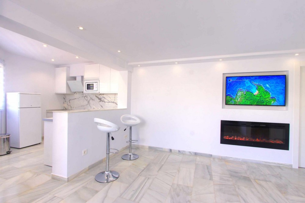• Great INvestment - return holiday rental 6%-7% per year - 2 AMAZING BEACHFRONT refurbished apartments earn directly income with existing bookings. Situated on top of each other- each 2 bedrooms 2 bathrooms- 2 new kitchen -2 new living dining area - all in modern stylish interior design - perfect for FAMILIES or Couples its like a townhouse on 3 levels but has 2 entrances after main entrance- the APARTMENTS are ONLY 80 METERS FROM THE famous Golden Beach away - between El Rosario and Elviria --1 Floor Apartment : 2 Bedrooms ( 1. Bedroom double bed 180 cm wide and sofa bed and bathroom with shower - - 2. Bedroom king size bed , with access to the terrace , and ensuite Bathroom 1 Toilette and walk-in shower- - Open Kitchen and Living room with fiber optic internet, large terrace with dining table . 2. FLOOR Duplex PENTHOUSE WITH ROOF TERRACE : 2 BEDROOMs ( 1. Bedroom Double bed 180cm wide -with sofa bed -2. bedroom 2 single beds ) . 2 Bathrooms - TOTAL SLEEPS 12 - 4 Bedrooms, 4 BATHROOMs - 2 LIVING AREAS- 2 KITCHEN- 3 TERRACES - wifi - EXCELLENT beachfront location- About 150 meter to Estrella del Mar Beach Club Bar- and Restaurant with a 5 star Spa, Gym, steam bath, Sauna, Massage, heated pool indoor, heated pool out door ( daily ticket extra charge ). Another highlight is la Planche Belgium French RESTAURANT IN 100 METER DISTANCE and La Scala Italian Restaurant only 150 meters away. The Urbanization Golden Beach is located on One of the best beaches in Marbella - perfect for family couples - Child friendly 3 POOLS including children pool and play ground . Wonderful tropical garden with seating areas for reading and relaxing Great restaurants right in front on the beach. A Duplex Penthouse of 95 m2 .Perfect for a larger family who are looking for a quiet place and chill out for summer evenings. The apartments are one on top of the other . The highlight of the apartments are the large roof terrace with outdoor lounge bed with amazing sea view mountain view and view to the garden and pool areas . Beachfront apartment complex right next to the beach. Award-winning garden with exotic plants, streams, fountains and two large pools and two children's pools for the youngest children. The apartments consists of 2 kitchens, 2 living rooms, 4 bedrooms (1 queen + 2 single beds and 2 sofa beds in 1st floor appt. and one queen bed and 2 single beds and 2 extra beds in upper floor apt.), 4 bathrooms, private roof terrace. From the terrace you have a beautiful view of the sea - pool and mountains and the spectacular nice garden area. The apartment is just 80 meters from one of Marbella's best and most child-friendly beaches. We have a playground for little children only 40 meters away. Several restaurants, bar coffee , hair dresser , butcher , Pharmacy , bus station and 2 large supermarkets in walking distance . Close to golf and tennis clubs, 8 km to Marbella and 12 km to Puerto Banus. The apartment has everything needed for a comfortable vacation: fully equipped kitchens including dishwashers, washing machines, ironing board . For families with children there is also a cot, high chair and a stroller on request.Composition: 2 kitchen, 4x bedroom, 4x bathroom, 2 Living rooms with Smart TV areas. Amenities: Terrace, air conditioning, heating, swimming pool, bed linen & towels,Beach towels, hairdryer, free wireless internet, free parking on the street, paid cot on request, The Beachclub Estrella del Mar, is next to the Urbanization on the Beach and has a Spa, Gym, Massage, Heated Pool, turkish bath, Wellness, Pilates Courses, Yoga. We have an agreement with them, they give you a 10% discount
