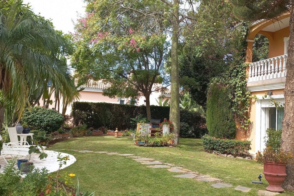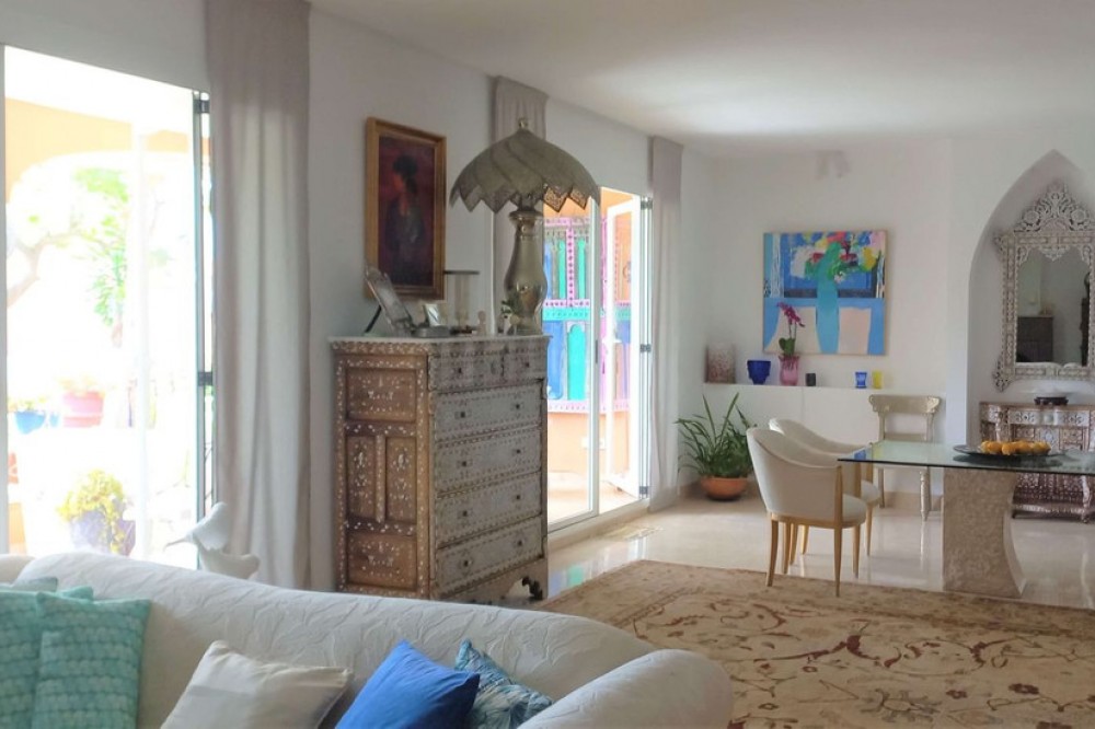 - Check out this amazing ground floor apartment that has been fully renovated! It features 5 bedrooms and 5.5 bathrooms, with a spacious 400 m2 private garden. The apartment itself is 385 m2 and is located in the prestigious beachfront complex, Park Beach. You'll love the luxurious touches, like the 3-metre-high ceilings and the south/west facing orientation. Plus, there are 2 underground parking spaces and 2 storage rooms, each measuring 40m2. One of the best things about this property is the privacy it offers, with stunning views over the tropical gardens. And if you're a beach lover, you'll be thrilled to know that it's just 200 metres away! Not only is this apartment in a fantastic location, but it's also close to all amenities. You'll find attractive Estepona and San Pedro de Alcántara just minutes away, and Puerto Banús and Marbella are within a 15-minute drive. Trust me, this property comes highly recommended. Don't miss out on this incredible opportunity!
