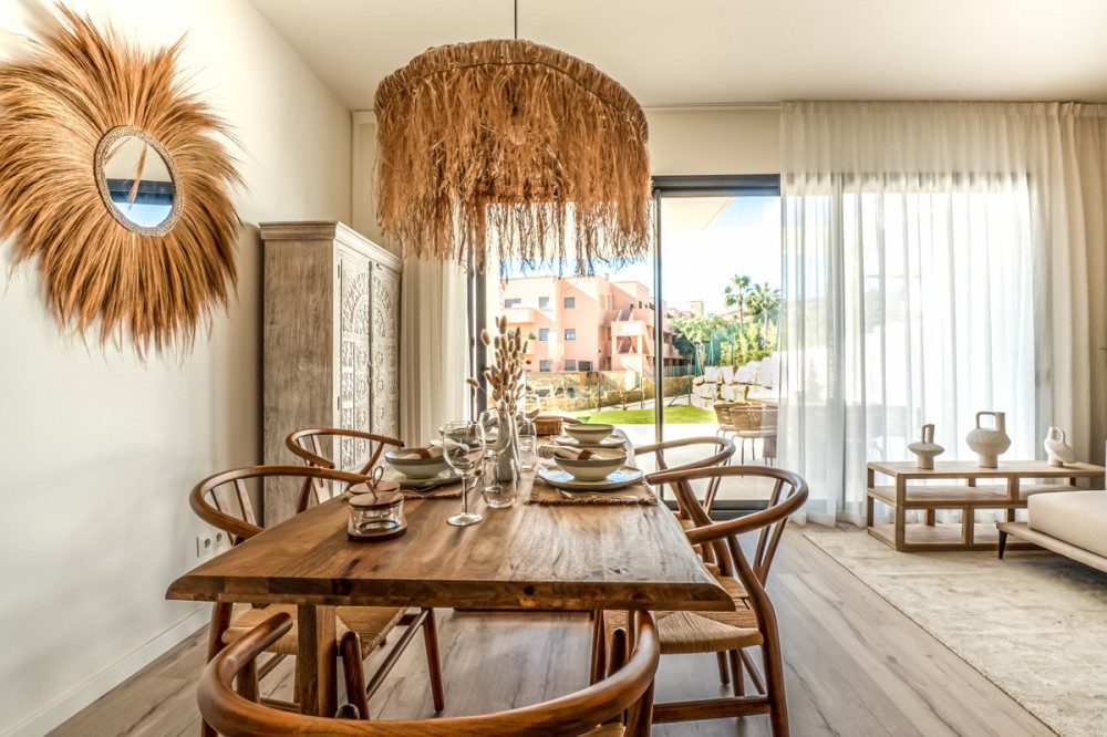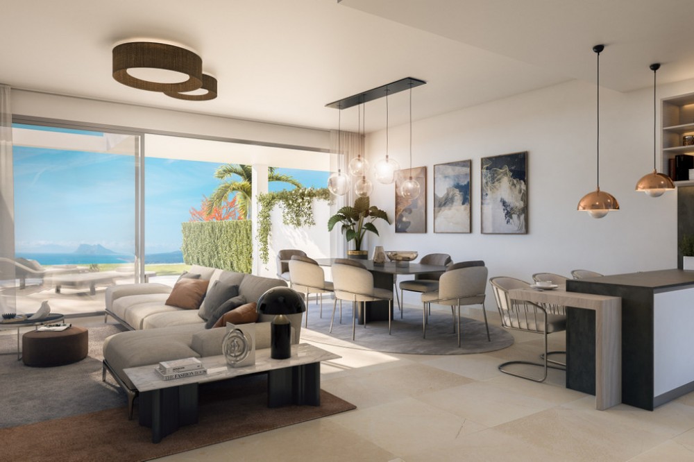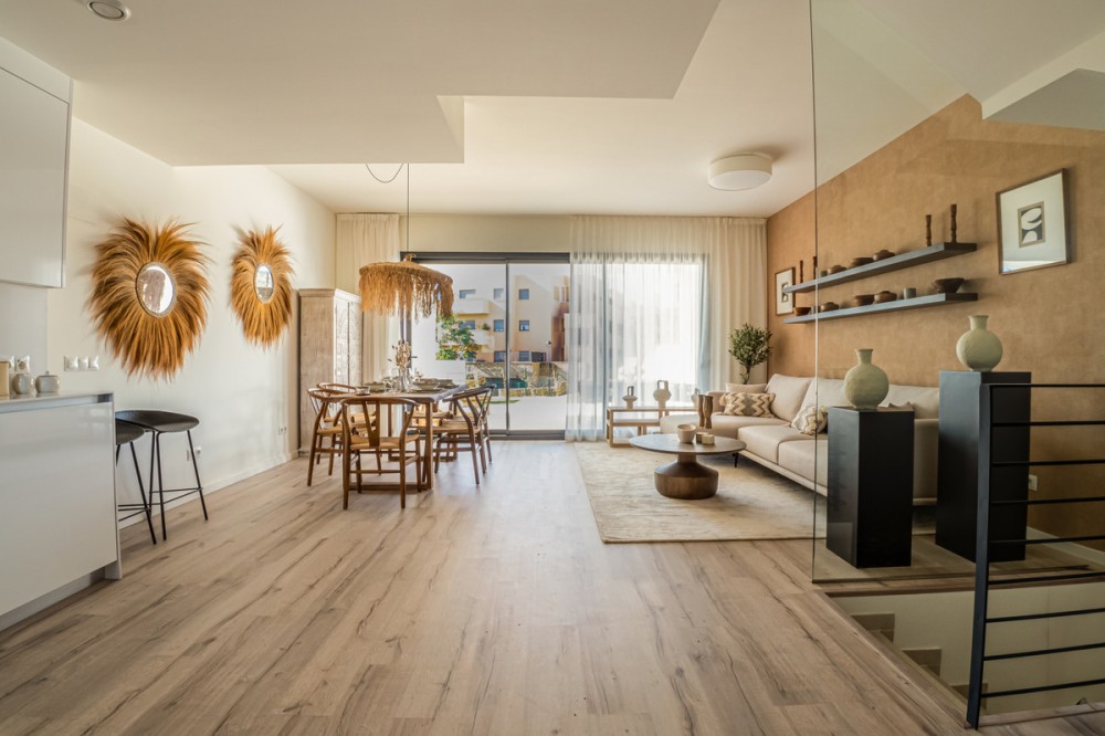 - New Development: Prices from €595,000 to €638,000. [Bedrooms: 3] [Bathrooms: 2] [Built size: 127m2]. 2 LAST UNITS FULLY FURNISHED!!! Life is built on small pleasures and intense sensations. This development is the second phase of a fabulous Residential Development. It comprises 16 townhouses of 3 bedrooms and is located in Urbanización de Bahía de Las Rocas en Manilva, on the Costa del Sol, Málaga. At this development you will enjoy the best and most spectacular sea views, stretching to Gibraltar, the Moroccan coastline and Estepona Bay with the best orientation, south – south west and east. The ideal setting to enjoy the authentic Mediterranean lifestyle. The homes have a total built area ranging from 139 m2 to 145 m2 with basements of 59.40 m2, terraces from 46 m2 to 115 m2, solarium of 46 m2 and private gardens until 328 m2. Private garages offer parking space for two cars and the communal areas offer swimming pools, padel tennis court and children’s play area.