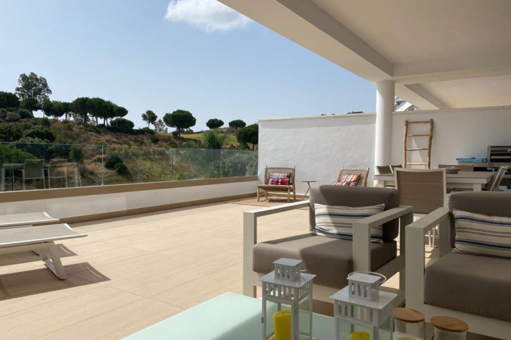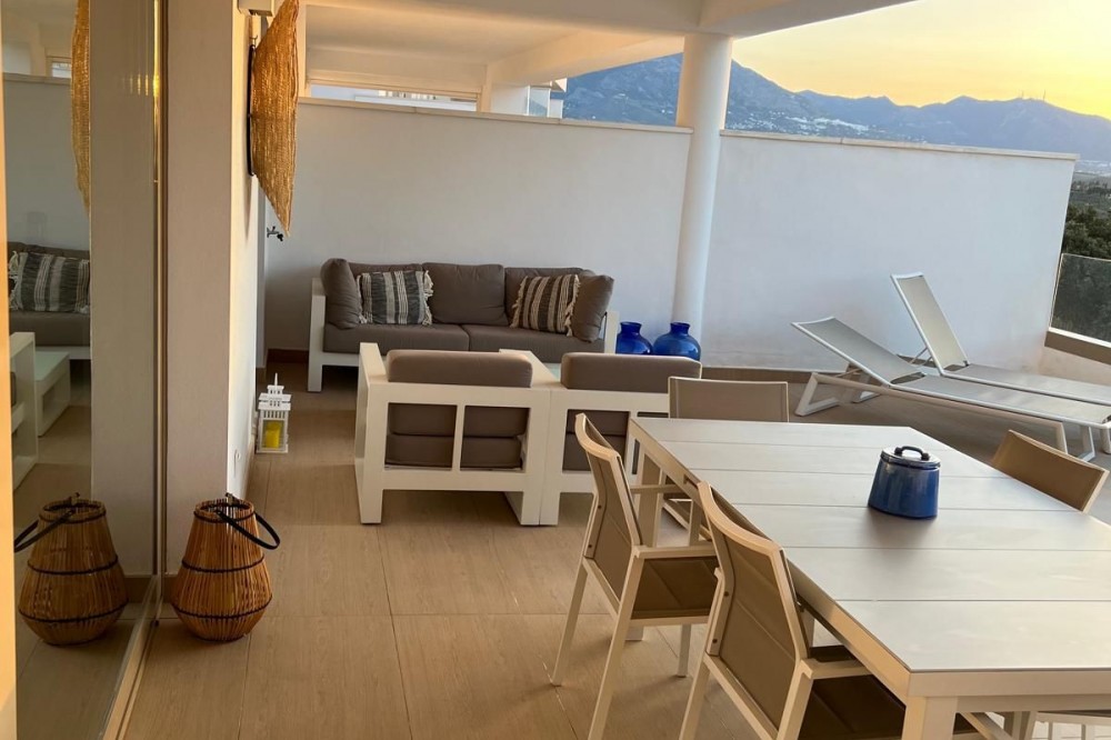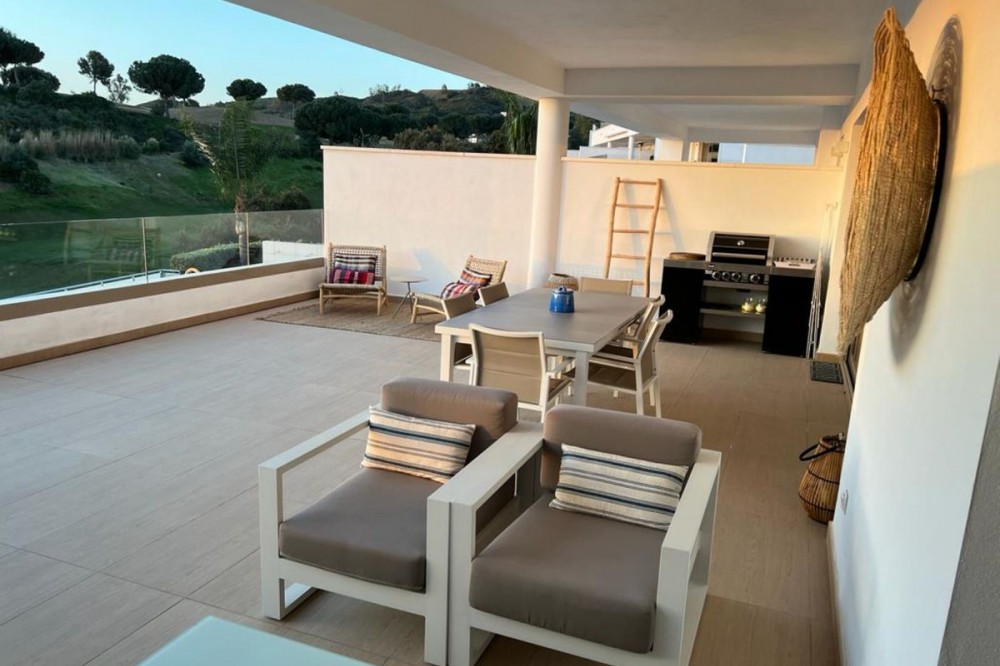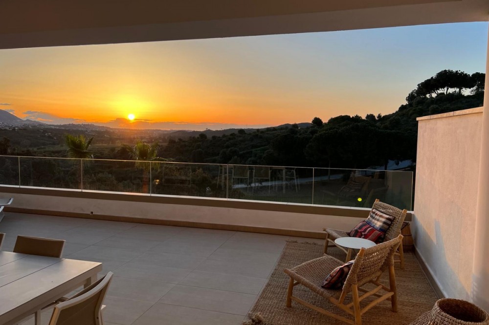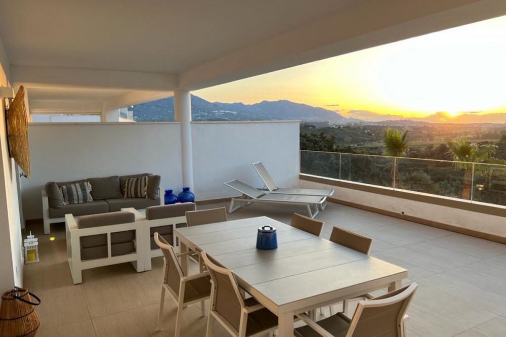 - Horizon Golf complex with panoramic views over the golf course and La Cala de Mijas. This gated community has landscaped tropical gardens and a large communal swimming pool, whilst only being a five minute drive to the town of La Cala de Mijas and a twenty minute drive to Marbella Town.This new development is found in La Cala Golf Resort, which offers 18-hole golf courses, a hydrotherapy centre and Spa, a 4-star hotel, a golf school (La Cala Golf Academy), 24-hour security and a variety of sports facilities, all surrounded by a fantastic natural environment. The apartment is modern and bright, with open plan living areas, fully fitted kitchen and spacious, sunny terraces. Other features include marble floors, hot and cold air conditioning, private garage space and storeroom. Sold fully furnished. Owners enjoy the Membershipcard from La Cala Golf club with several discounts ( Golf, gym, tennis,etc)
