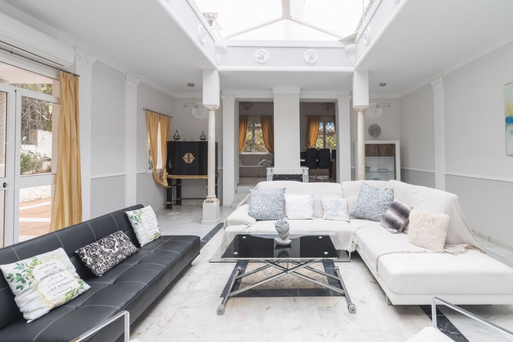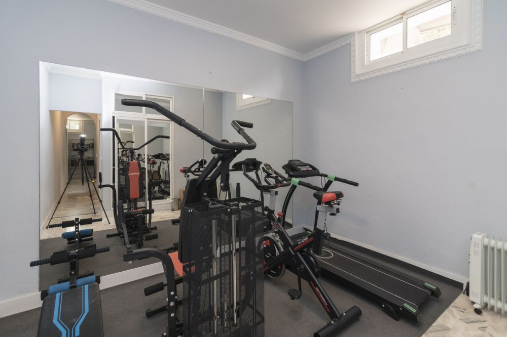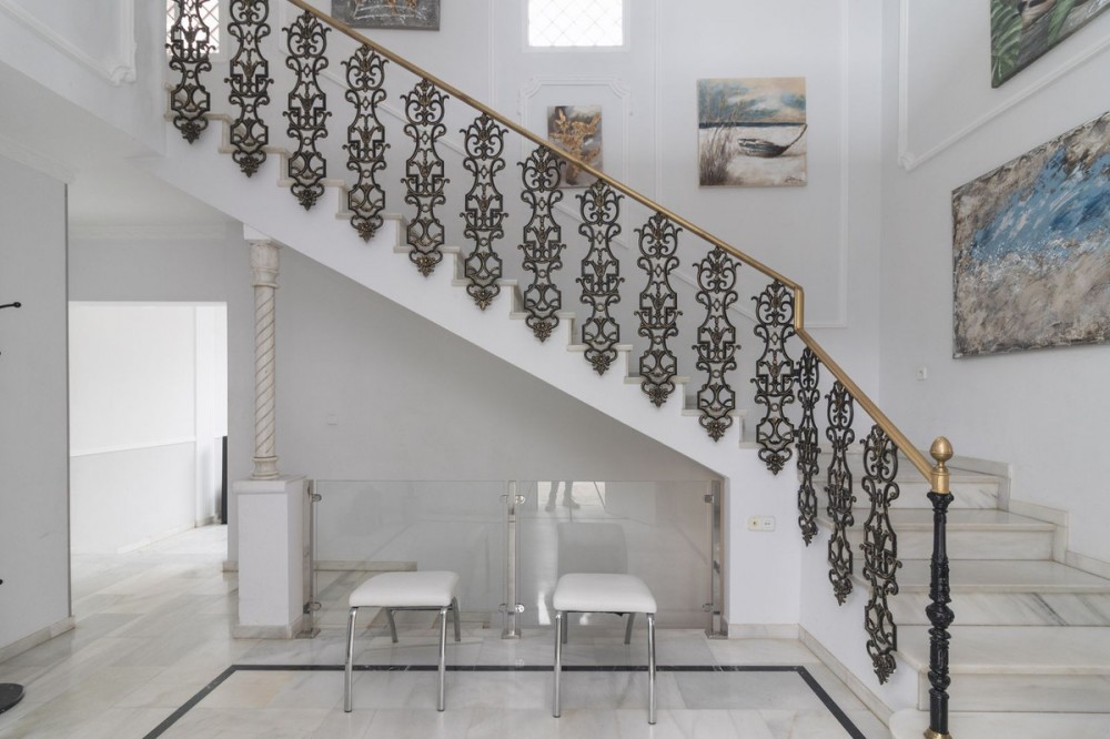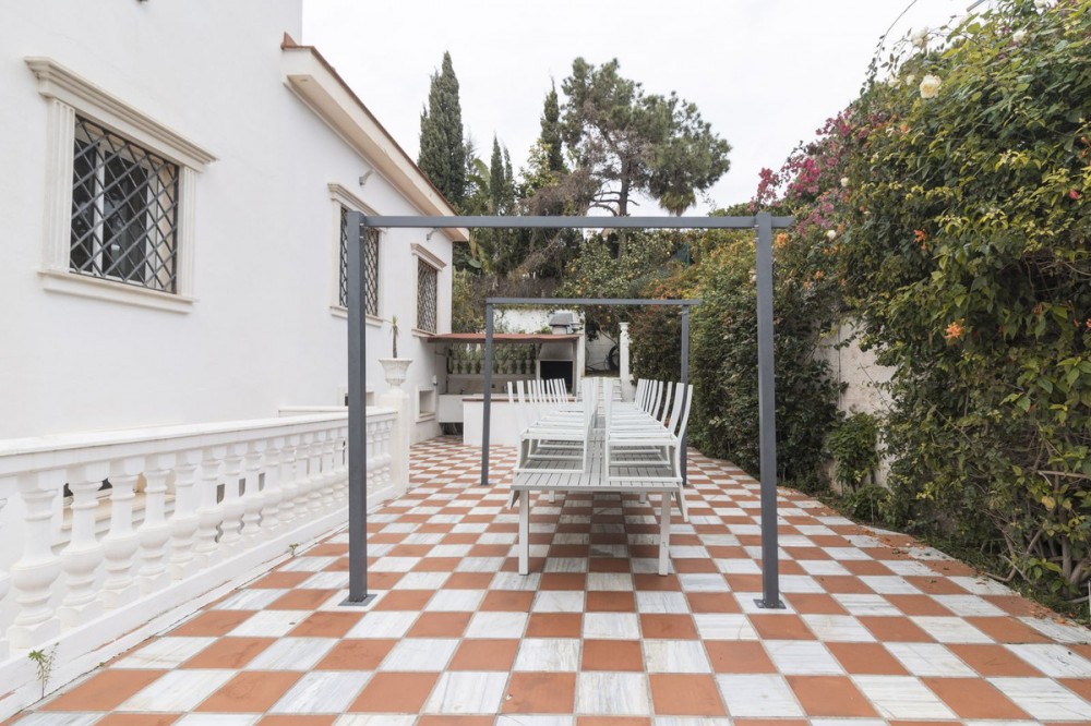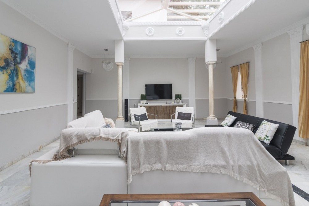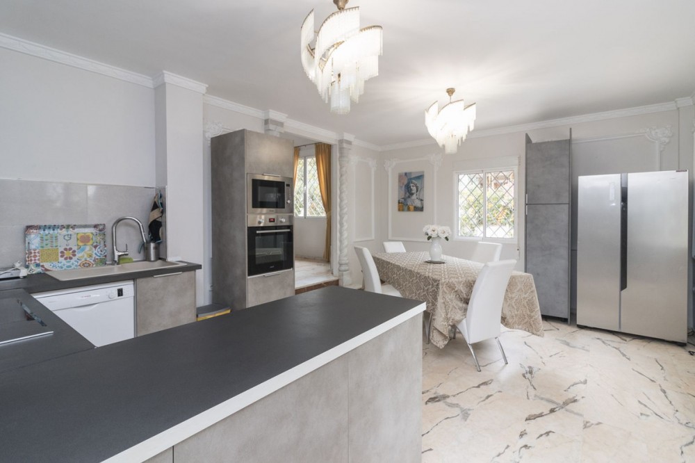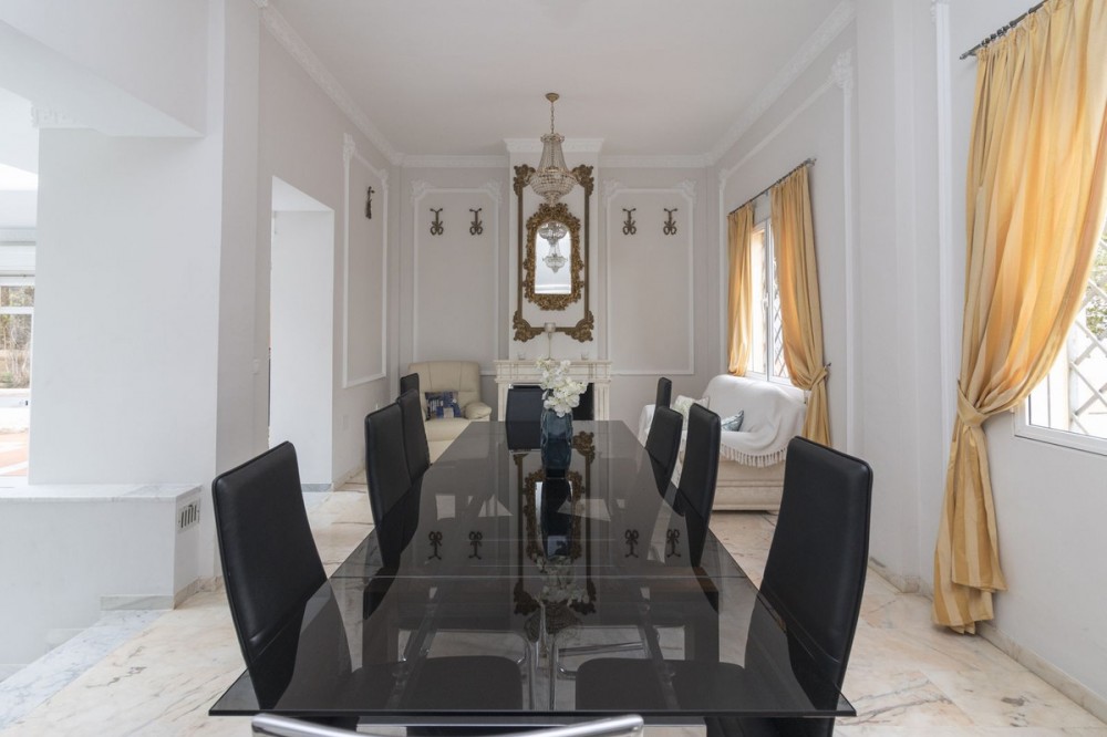 - Beautiful Villa located in Hacienda las Chapas Marbella, the Villa is located on a plot of 1400 meters, and it consists of 600 meters built, upon entering it we find its private pool and a barbecue area, private garage for two vehicles and storage room. Upon entering the house we find a hall, two large living rooms, one a dining room and the other a luxurious living room with a fireplace and marble columns. Also on the ground floor is the fully equipped kitchen and two bedrooms with en-suite bathrooms. Terrace of 30 square meters to enjoy the tranquility of the place. On the upper floor 4 bedrooms with 3 full bathrooms and a small winter garden. In the basement, 2 bedrooms, both with independent bathrooms, a Spa and a Gym room. Outside the house, two more apartments with an independent bathroom, ideal for renting as a vacation rental. The entire house has marble floors, the bathroom coverings are also made of marble, which makes it a Luxury Villa. It is located in front of the Supercor, 10 minutes from the beach on foot, close to private schools and all kinds of services. Do not hesitate to visit this beautiful house!