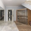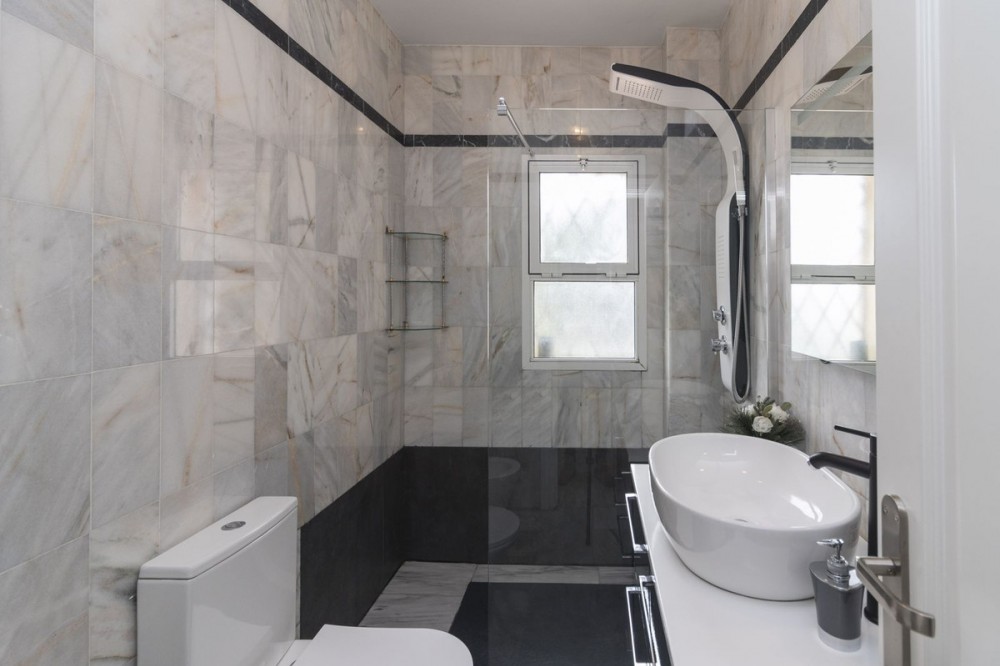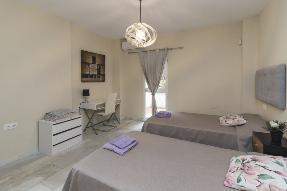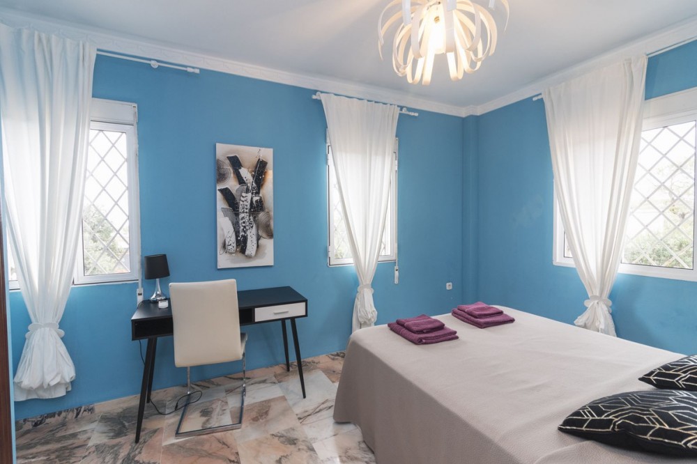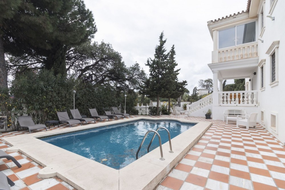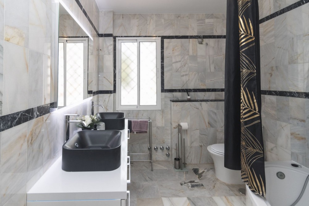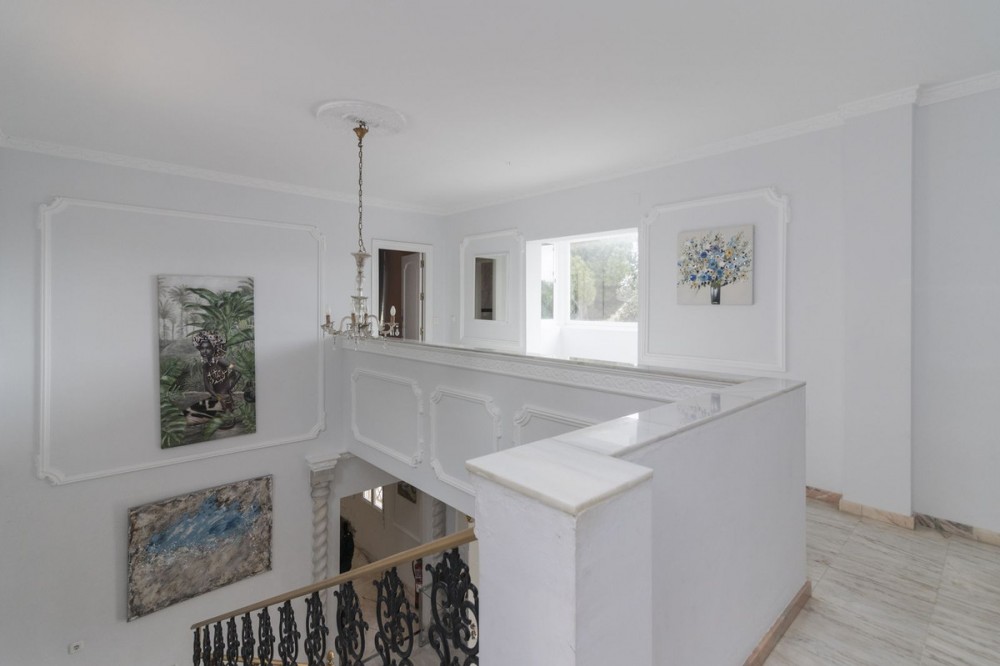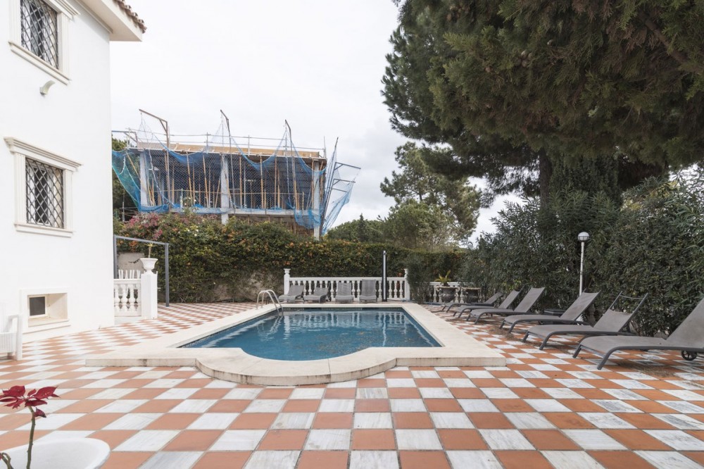 - Beautiful Villa located in Hacienda las Chapas Marbella, the Villa is located on a plot of 1400 meters, and it consists of 600 meters built, upon entering it we find its private pool and a barbecue area, private garage for two vehicles and storage room. Upon entering the house we find a hall, two large living rooms, one a dining room and the other a luxurious living room with a fireplace and marble columns. Also on the ground floor is the fully equipped kitchen and two bedrooms with en-suite bathrooms. Terrace of 30 square meters to enjoy the tranquility of the place. On the upper floor 4 bedrooms with 3 full bathrooms and a small winter garden. In the basement, 2 bedrooms, both with independent bathrooms, a Spa and a Gym room. Outside the house, two more apartments with an independent bathroom, ideal for renting as a vacation rental. The entire house has marble floors, the bathroom coverings are also made of marble, which makes it a Luxury Villa. It is located in front of the Supercor, 10 minutes from the beach on foot, close to private schools and all kinds of services. Do not hesitate to visit this beautiful house!