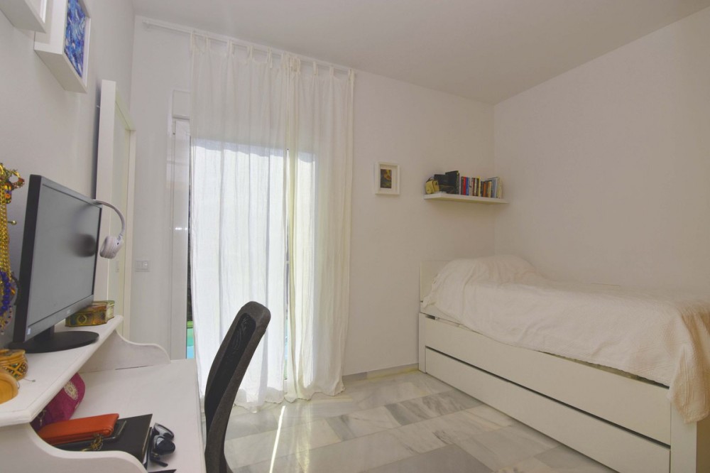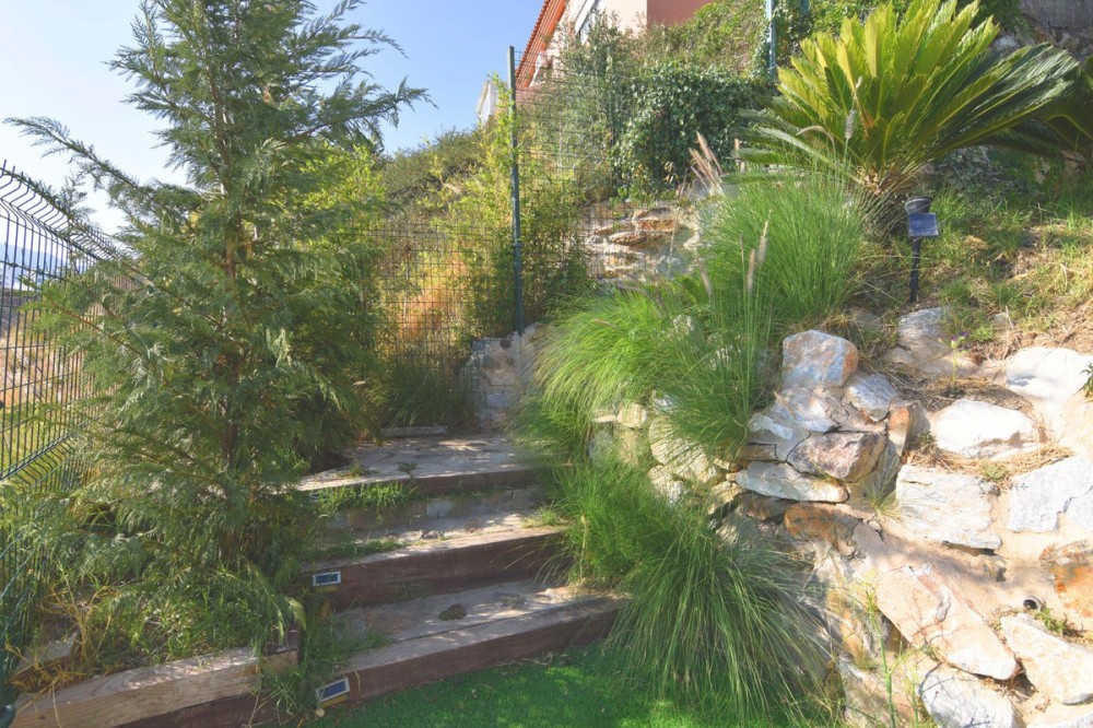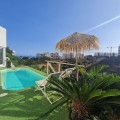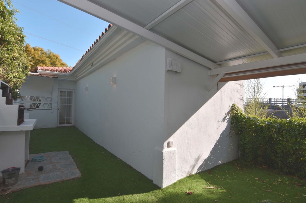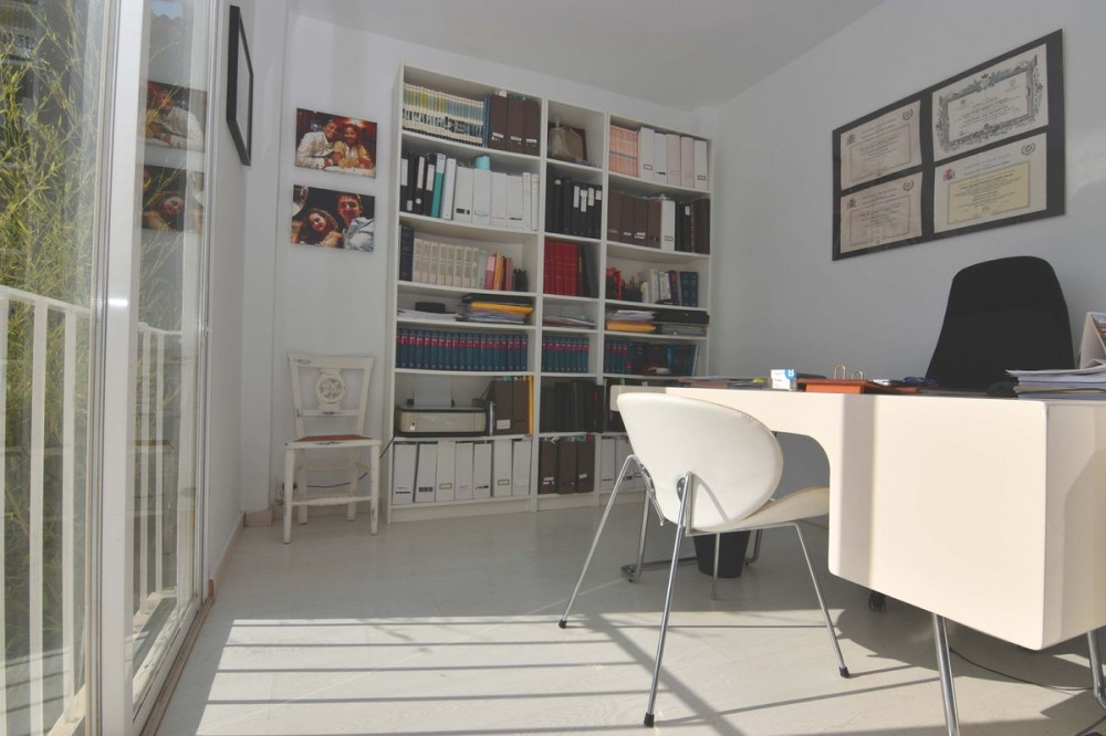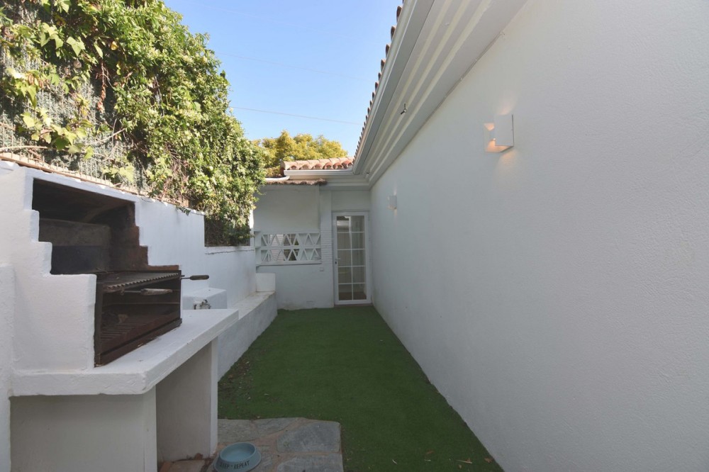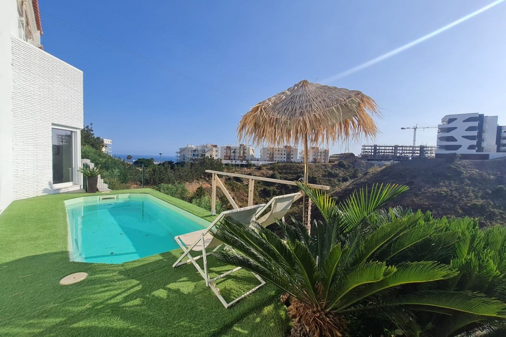 - Spacious semi-detached house located in the prestigious Reserva del Higuerón private complex, on the border between Benalmádena and Fuengirola, a step away from all services and Carvajal beach with its beautiful promenade and restaurants. The suburban train station is 100 meters away and there is a free bus service for the residents of the complex. The property has several renovations done: the kitchen, modern and fully equipped with all electrical appliances, has a very nice little terrace with sea views, next to the living room there is an office area with views to the west and plenty of natural light as well as a guest apartment in the basement of the house and finally a private pool in the garden that enjoys sun all day thanks to its west orientation. We access the house where there is a closed garage as well as an outdoor parking space; Next to the entrance hall we find a very functional wardrobe area and on the other side access to a patio with a barbecue area. The ground floor includes the living room with views of the mountains, lots of natural light, the office, the spacious and bright kitchen with its terrace and a guest toilet. On the lower floor we have 3 bedrooms and 2 bathrooms, one of them en-suite inside the large master bedroom, all bedrooms have independent air conditioning, fitted wardrobes and direct access to the garden where there is a private pool with an outdoor shower. From there there is access to a guest suite, recently built into the rock and which has a large main room with bathroom and a back room where a kitchen could easily be installed. The suite has a private terrace and offers complete privacy from the rest of the house. From the garden there is a staircase that communicates with the entrance of the house. This house is ready to move into, located in a very exclusive residential area that has its own private security and where there is a 5-star Hilton Hotel, Cafeteria, Restaurants, supermarket, pharmacy, SPA, gym, hairdresser, 2 swimming pools, tennis courts tennis and paddle etc... Contact us for more information.