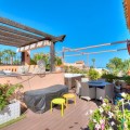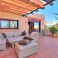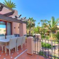 - This breathtaking refurbished duplex penthouse offers a stunning beachside retreat, just steps from the wonderful promenade and beaches of San Pedro de Alcántara. The residence is bathed in natural sunlight throughout the day and features mesmerizing views of the lush communal gardens and the Mediterranean Sea. On the upper level, you'll discover the impressive master suite radiating elegance and sophistication. With high beamed ceilings, the master suite boasts a modern bathroom complete with a luxurious bath, double sink, and a spacious shower that doubles as a Hammam, offering a spa-like retreat within your home. The master suite gracefully extends onto two expansive terraces: one featuring a barbecue, kitchenette with a sink, dishwasher, wine fridge, ample storage, and a relaxing jacuzzi; and the other offering a partially covered large sitting area, perfect for al fresco dining. Recently upgraded to the highest standards of modern luxury, the property welcomes you with a partially renovated kitchen, equipped with top-of-the-line appliances and an integrated utility room, perfect for seamless daily living. The spacious living room and one of the guest bedrooms open onto the main-level terrace, providing a serene setting to enjoy the verdant garden views. This property also offers a convenient parking space and storage room in the underground communal garage, ensuring both practicality and security. The community is a tranquil haven, featuring extensive gardens with serene ponds, a large pool, and the added assurance of 24-hour surveillance. Offering unmatched luxury and convenience, this penthouse provides an exceptional living experience near the beach, with all amenities within easy walking distance. Whether you desire a permanent residence or a dreamy vacation retreat, this property ensures a lifestyle of elegance and sophistication on the beautiful Costa del Sol.