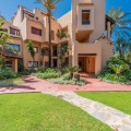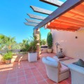• This breathtaking refurbished duplex penthouse offers a stunning beachside retreat, just steps from the wonderful promenade and beaches of San Pedro de Alcántara. The residence is bathed in natural sunlight throughout the day and features mesmerizing views of the lush communal gardens and the Mediterranean Sea. On the upper level, you'll discover the impressive master suite radiating elegance and sophistication. With high beamed ceilings, the master suite boasts a modern bathroom complete with a luxurious bath, double sink, and a spacious shower that doubles as a Hammam, offering a spa-like retreat within your home. The master suite gracefully extends onto two expansive terraces: one featuring a barbecue, kitchenette with a sink, dishwasher, wine fridge, ample storage, and a relaxing jacuzzi; and the other offering a partially covered large sitting area, perfect for al fresco dining. Recently upgraded to the highest standards of modern luxury, the property welcomes you with a partially renovated kitchen, equipped with top-of-the-line appliances and an integrated utility room, perfect for seamless daily living. The spacious living room and one of the guest bedrooms open onto the main-level terrace, providing a serene setting to enjoy the verdant garden views. This property also offers a convenient parking space and storage room in the underground communal garage, ensuring both practicality and security. The community is a tranquil haven, featuring extensive gardens with serene ponds, a large pool, and the added assurance of 24-hour surveillance. Offering unmatched luxury and convenience, this penthouse provides an exceptional living experience near the beach, with all amenities within easy walking distance. Whether you desire a permanent residence or a dreamy vacation retreat, this property ensures a lifestyle of elegance and sophistication on the beautiful Costa del Sol.