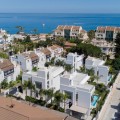 - These marvelous new modern villas for sale are located in one of the most luxurious residential areas in Marbella – Golden Mile, in a secure urbanization Rio Verde, just 100 meters from the beach. The villas combine excellent quality, amazing location and the best price. Each house is spacious, full of light and equipped with everything necessary for a comfortable life. It consists of 4 bedrooms and 5 bathrooms, as well as large terraces on each floor, both covered and uncovered, perfect for barbecue, gatherings with friends or just sunbathing to your heart’s content. A private swimming pool will bring joy to your whole family throughout long Spanish summer. These villas in the Golden Mile are located close to the beach, three minute walk away from Puerto Banus and within a walking distance from the supermarkets. The villas offer beautiful sea views and are the perfect choice both as a holiday residence and as a family home.