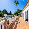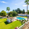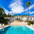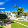 - One Level Villa by world-famous architect Frank Lloyd Wright *. Ideal as a family home for her, him and the children. The villa offers an incredible quality of life, plus a range of leisure, hobbies and sports all under one roof. Excellent location in a quiet residential area on a plot of 4500 m² in Rancho Domingo, Benalmadena. The property consists of : - a main house on one level ( approx 650 sqm ) with 4 bedrooms ensuite, guest toilet, kitchen, laundry and indoor pool ( salt and heated ). - small house for nanny or employees with separte Entrance - 2 guest apartments -Gym -Sound studio -Tenniscourt For Carlovers : - air-conditioned garage for 16 cars for storage of Oldtimer - second Garage for 2 Cars - third Garage for Bikes - outside parking spaces inside the property too easily park another 5 cars Garden with different relaxing areas with fountains, outdoor salt water pool,barbeque, playgrounds About Rancho Domingo : designed by the world famous architect Frank Lloyd Wright and his pupil Robert Mosher over the 1950’s, is now included in the National Heritage. ( Patrimonial Cultural y Histórico ) In the height of Benalmadena is one of the more historic and established gated urbanisations on the Costa del Sol, where residents enjoy total privacy. International Schools, Hospital, Golfcources International schools, golf courses, shopping, hospital and the international airport are all within a few minutes' drive.