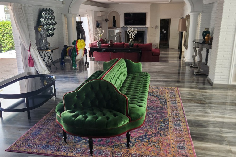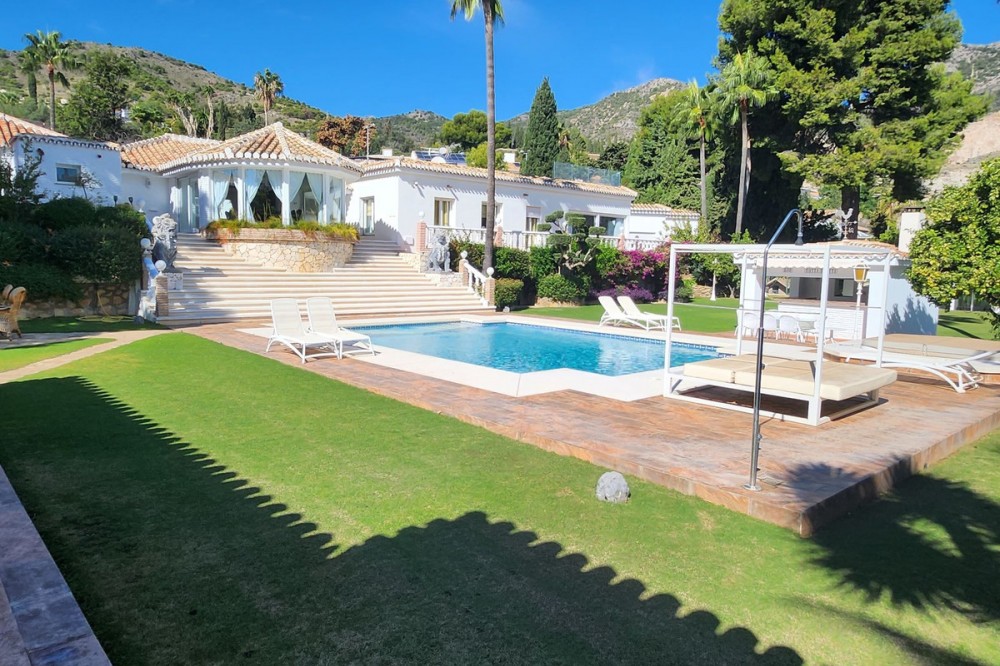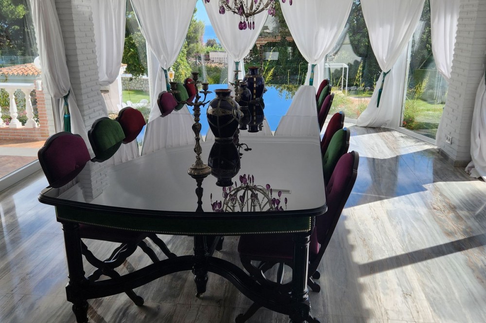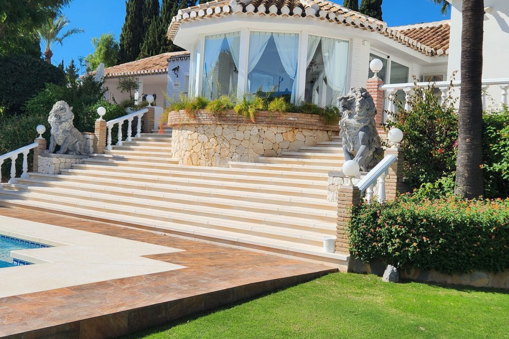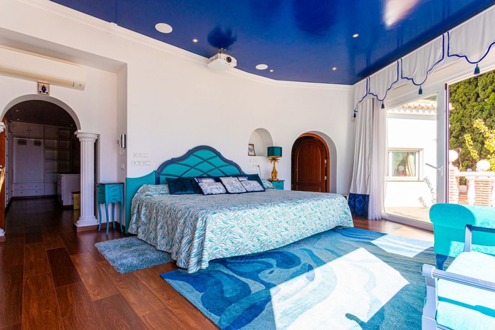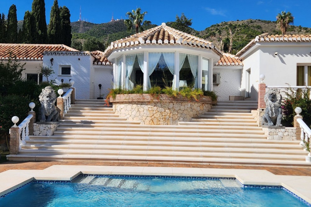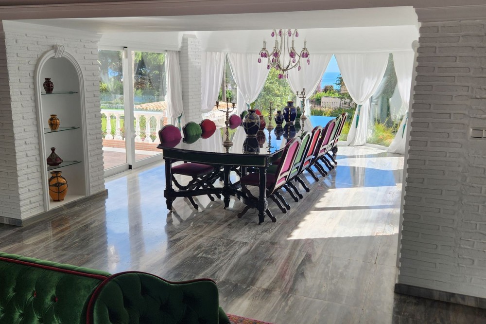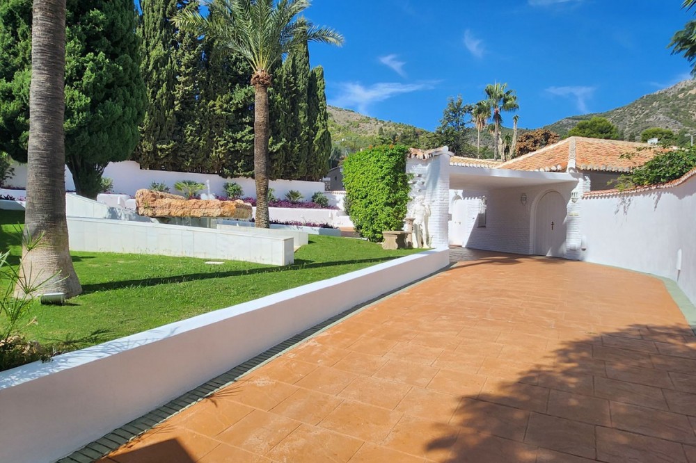 - One Level Villa by world-famous architect Frank Lloyd Wright *. Ideal as a family home for her, him and the children. The villa offers an incredible quality of life, plus a range of leisure, hobbies and sports all under one roof. Excellent location in a quiet residential area on a plot of 4500 m² in Rancho Domingo, Benalmadena. The property consists of : - a main house on one level ( approx 650 sqm ) with 4 bedrooms ensuite, guest toilet, kitchen, laundry and indoor pool ( salt and heated ). - small house for nanny or employees with separte Entrance - 2 guest apartments -Gym -Sound studio -Tenniscourt For Carlovers : - air-conditioned garage for 16 cars for storage of Oldtimer - second Garage for 2 Cars - third Garage for Bikes - outside parking spaces inside the property too easily park another 5 cars Garden with different relaxing areas with fountains, outdoor salt water pool,barbeque, playgrounds About Rancho Domingo : designed by the world famous architect Frank Lloyd Wright and his pupil Robert Mosher over the 1950’s, is now included in the National Heritage. ( Patrimonial Cultural y Histórico ) In the height of Benalmadena is one of the more historic and established gated urbanisations on the Costa del Sol, where residents enjoy total privacy. International Schools, Hospital, Golfcources International schools, golf courses, shopping, hospital and the international airport are all within a few minutes' drive.