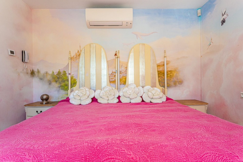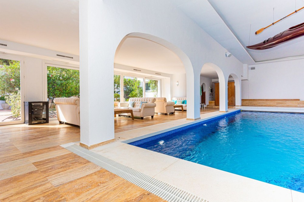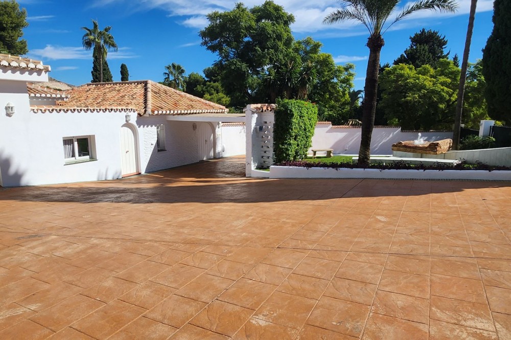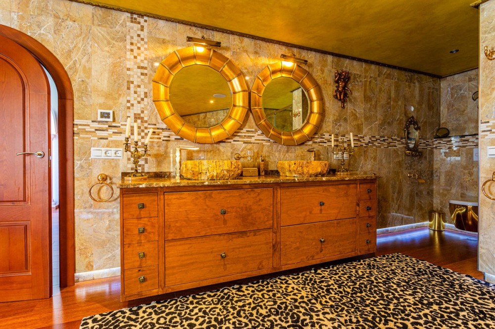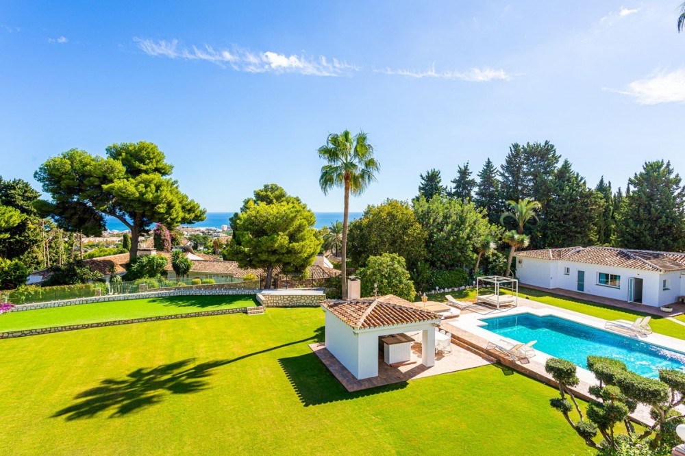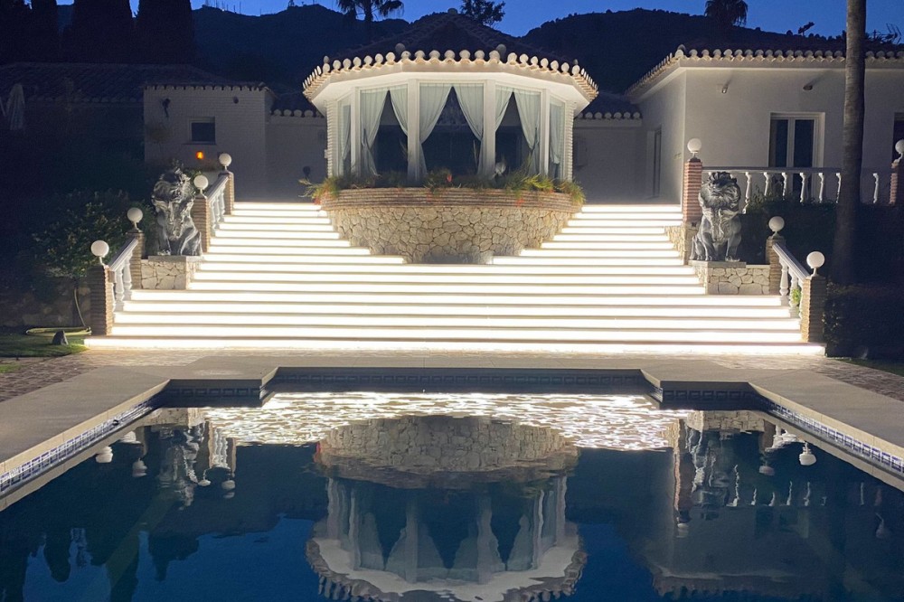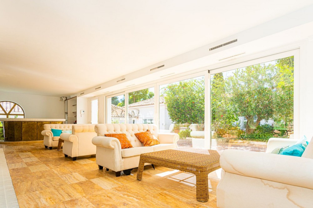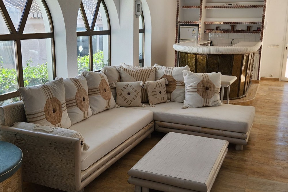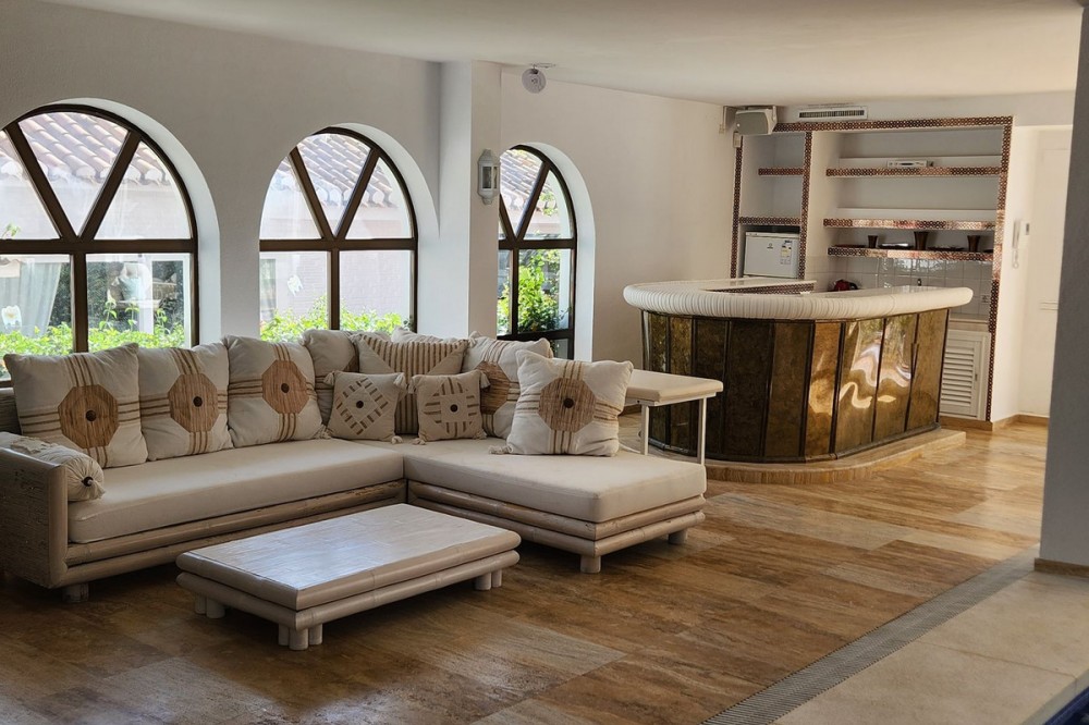 - One Level Villa by world-famous architect Frank Lloyd Wright *. Ideal as a family home for her, him and the children. The villa offers an incredible quality of life, plus a range of leisure, hobbies and sports all under one roof. Excellent location in a quiet residential area on a plot of 4500 m² in Rancho Domingo, Benalmadena. The property consists of : - a main house on one level ( approx 650 sqm ) with 4 bedrooms ensuite, guest toilet, kitchen, laundry and indoor pool ( salt and heated ). - small house for nanny or employees with separte Entrance - 2 guest apartments -Gym -Sound studio -Tenniscourt For Carlovers : - air-conditioned garage for 16 cars for storage of Oldtimer - second Garage for 2 Cars - third Garage for Bikes - outside parking spaces inside the property too easily park another 5 cars Garden with different relaxing areas with fountains, outdoor salt water pool,barbeque, playgrounds About Rancho Domingo : designed by the world famous architect Frank Lloyd Wright and his pupil Robert Mosher over the 1950’s, is now included in the National Heritage. ( Patrimonial Cultural y Histórico ) In the height of Benalmadena is one of the more historic and established gated urbanisations on the Costa del Sol, where residents enjoy total privacy. International Schools, Hospital, Golfcources International schools, golf courses, shopping, hospital and the international airport are all within a few minutes' drive.