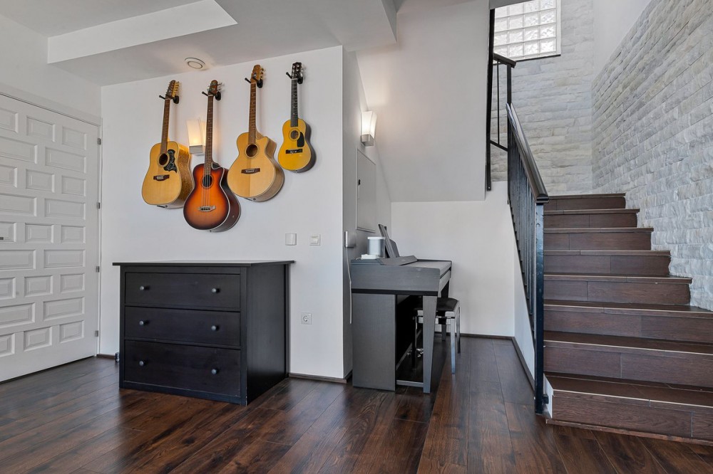 Security: electric blinds, alarm system
