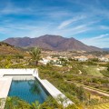 - The panoramic villa is embedded in the exclusive golfing community of Finca Cortesin, surrounded by the Mediterranean nature, overlooking the mesmerizing Costa del Sol and the sea. This brand new 3-bedroom villa is equipped with modern and functional furniture which is included in the sales price. The entrance level with carport and stairways lead down to the villa through a beautiful garden area. The panoramic villa is located on a ground level facing south with a spacious sun terrace and 13 m wide infinity pool, with spectacular views of the 5-star golf course of Finca Cortesin and the Mediterranean coast. The property is built on one level, while the garden is distributed over three levels. In the first garden area there is a BBQ and dining area with an outdoor kitchen. In the lowest level there is a spacious kitchen garden with many tropical trees and plants, including fig, mango, lemon, lime, pomegranate and banana trees. The villa is brand new and ready to move into. Comprising of open plan living spaces, with a stunning fully fitted modern kitchen with central isle, a dining area and continuing into the sitting area that enjoys panoramic views over the golf. The living area opens onto a partially covered terrace area, with the infinity swimming pool with views down to the Mediterranean Sea. 3 large bedrooms all with en-suite bathrooms. Each bedroom with large picture windows opening onto terrace. The bathrooms are equipped with a free standing bathtub and or a spacious shower, as well as having 2 washbasins each, offering total relaxation. Set within the highly sought after 5-star golf resort of Finca Cortesin, surrounded by modern villas, golf courses and luxury services. A short drive to the beaches in the area of Casares, close to Estepona town and the exclusive town of Sotogrande in the opposite direction.