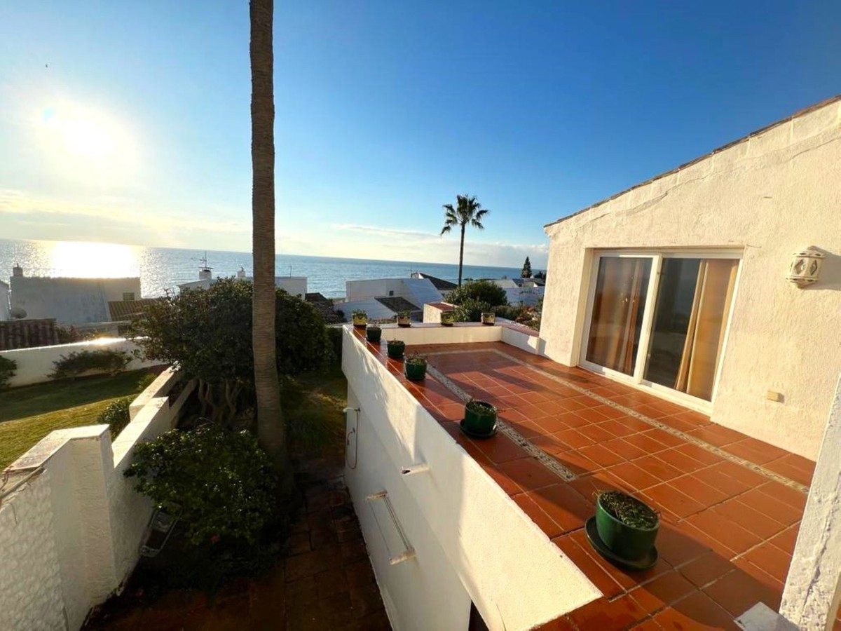 - MAGNIFICENT DETACHED VILLA WITH BEAUTIFUL SEA VIEWS! Located in a URBANIZATION ON THE BEACHFRONT LINE, ONLY 2 MIN FROM THE BEACH ON FOOT AND 7 MIN BY CAR FROM THE HISTORIC CENTER OF ESTEPONA. It is very well connected on foot through the beautiful coastal path and is close to supermarkets, schools and the new High Resolution Hospital of Estepona. It has a large garden area and spacious terraces with beautiful panoramic sea views, in addition, the property is surrounded by gardens and houses with the attractive design style of the famous architect Aubrey Marcus David and has SOUTHERN ORIENTATION. The house is distributed over three floors. The main entrance to the plot leads to a porch where the entrance of the house, which has a living area on two levels that enjoy great light, beautiful views of the Mediterranean and direct access to the terrace bordering the garden and a large kitchen, on the top floor and the first floor are the bedrooms and bathrooms. The house was renovated a few years ago and has been well maintained. The urbanization is very well maintained and has artificial grass tennis courts, gardens, 6 communal swimming pools, and covered parking areas within the grounds. WE HIGHLY RECOMMEND YOUR VISIT!