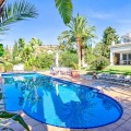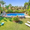 - Luxury family villa in MARBESA, one of the most exclusive areas of Marbella. A desirable large open-plan villa on a flat south-west facing plot with mature landscaped gardens and large heated pool, and with wonderful panoramic sea views, only a few minutes walk to the beach, and close to Elviria and pretty Cabopino port. Sales Price is not negotiable. The property is currently run as a highly successful luxury Bed & Breakfast business, but equally used as a family home by the owners. (this ongoing B&B Business can be purchased as as option - more information here). The property also has the benefit of potentially being used as three separate accommodation areas - 3 Bedroom ground floor House, with a 2 Bedroom top floor Apartment, and a 1 Bedroom self-contained Apartment (lower ground floor). PROPERTY HIGHLIGHTS » Panoramic Sea Views (one of the best in Marbesa) » 6 Minutes Walk to Beach & Beach Restaurants » Heated Pool » Flat Build & Plot » Underfloor Heating (throughout top floor) » Self-contained Apartment / Bedroom 6 (lower ground floor) » Individual Room Air Conditioning » Parking for 4 cars (garage 3 + driveway 1) » Sauna » Jacuzzi Hot Tub » in-built WoodBurner » High Speed Fibre-optic Internet » Professional Security System Throughout » New Water Boilers » Supermarket just few minutes walk » Malaga Airport just 30 mins drive / Marbella Town Centre just 10 mins drive » All Furniture can be sold with property (price negotiable) » Currently run as a Successful Bed & Breakfast Business (optional purchase