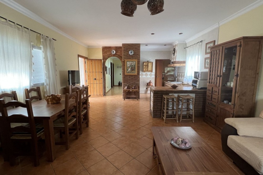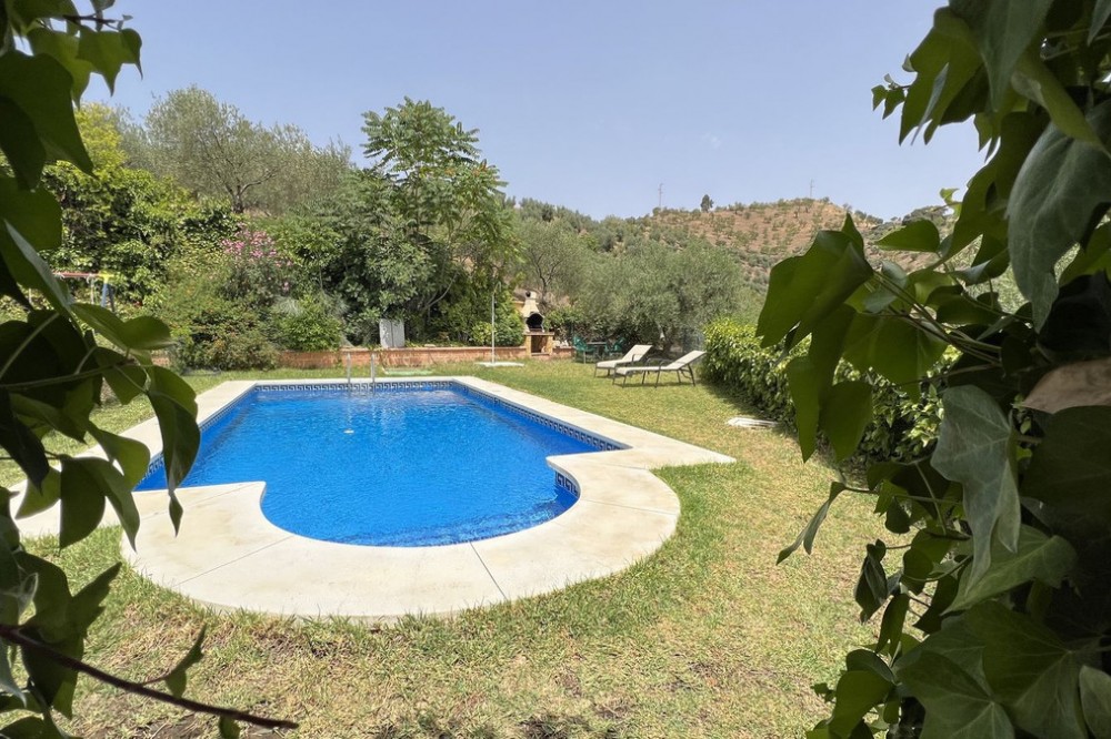 - If you are a nature lover, and you are looking for peace and tranquillity, then this house is definitely for you! Magnificent single storey country house, in the middle of hundreds of olive trees, comprising 3 bedrooms, a large bathroom with Italian shower, completely fitted open-plan kitchen with dining area, living room with fireplace, and a storeroom. From the kitchen you can access a covered terrace, perfect for enjoying your morning coffee, and at the back of the kitchen there is a large patio where you can enjoy the afternoon shade, and a garage with utility room. To the side of the property is lovely a green area with a large swimming pool, from where you will only hear the birds singing. PLEASE NOTE: The access to this house is not easy. There is 11km of mountain road from Estación de Cártama to the “Ermita de las Tres Cruces”, then 5km (about 15 minutes) of narrow dirt track. Once there, this house is a little paradise where you can disconnect from the hectic life of the city.
