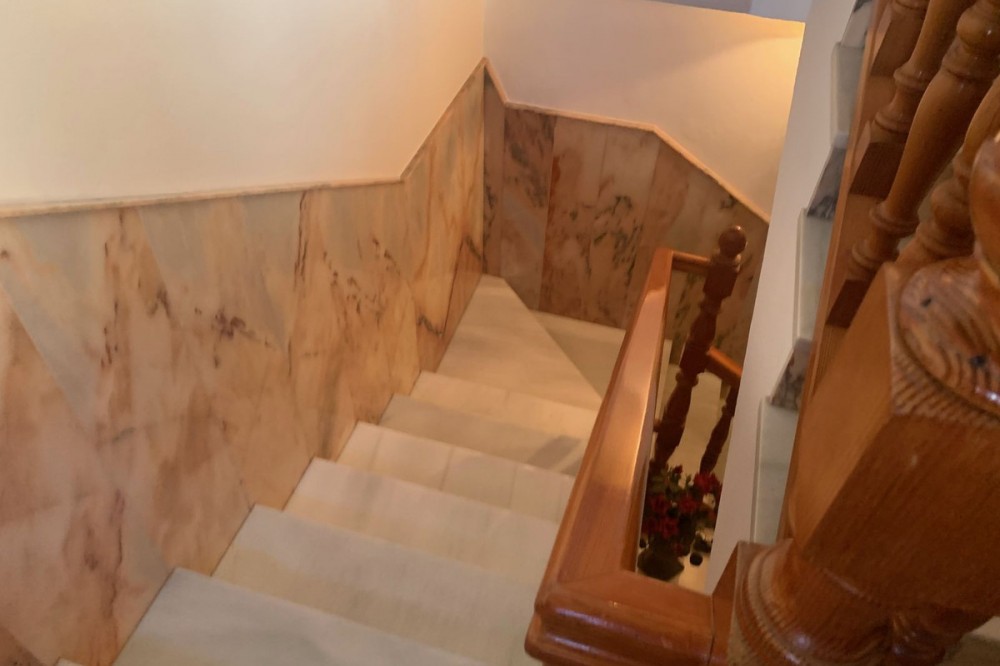 - Previously the entire block was sold, now they can be sold separately. Apartment in Estepona's old town. The house has three bedrooms, one bathroom and a toilet, a ten-square-meter patio, two small balconies, a kitchen, a living room with a fireplace, and a very spacious entrance. It is on the first floor without an elevator. Another apartment on the second floor with two bedrooms and a bathroom is for sale separately for 386,000 euros. The third floor has a roof terrace. They can be sold together or separately. The house is located in the very center of town, close to all amenities: supermarkets, shops, medical center, etc., and about a two-minute walk from the beach. Townhouse, Estepona, Costa del Sol. 5 Bedrooms, 3 Bathrooms, Built 130 m², Terrace 20 m². Setting : Town, Commercial Area, Beachside, Village, Close To Port, Close To Sea, Close To Schools. Orientation : South, South West. Condition : Excellent. Views : Mountain, Panoramic. Features : Covered Terrace, Fitted Wardrobes, Near Transport, Private Terrace, Utility Room, Marble Flooring. Furniture : Part Furnished. Kitchen : Fully Fitted. Security : Entry Phone. Utilities : Electricity, Drinkable Water. Category : Beachfront, Holiday Homes, Investment.