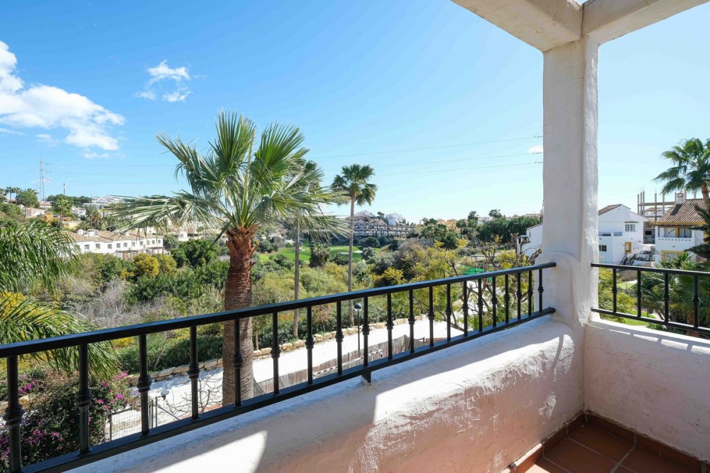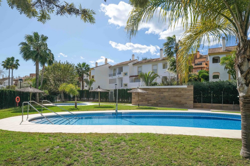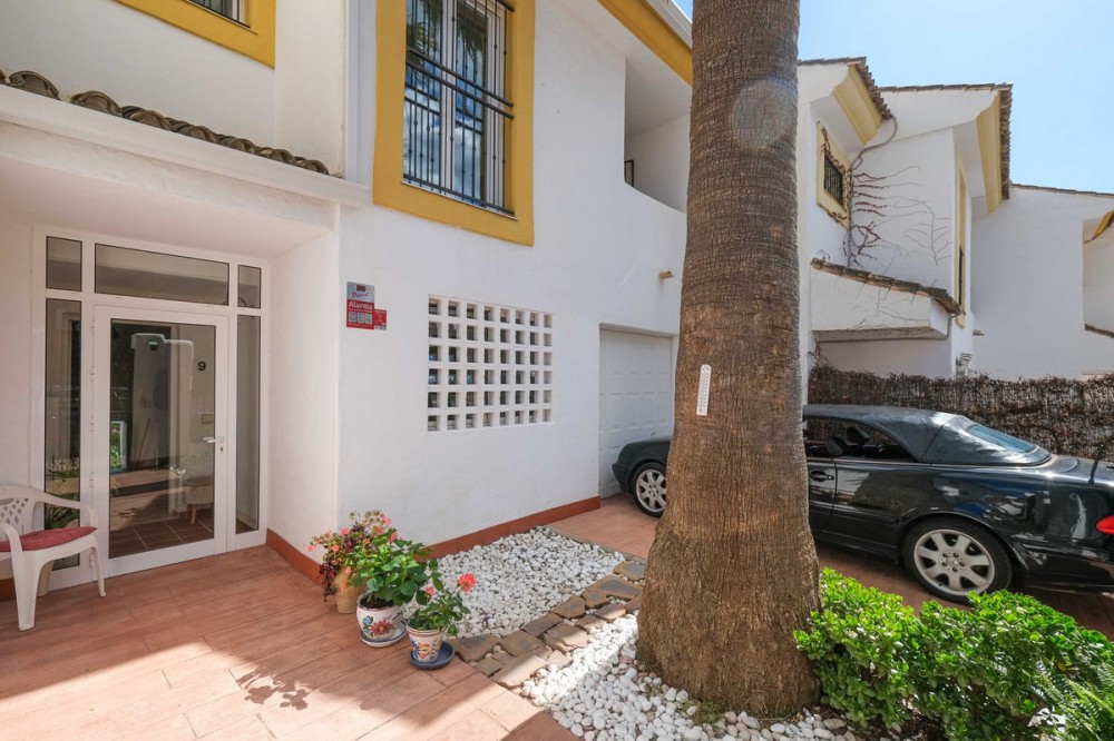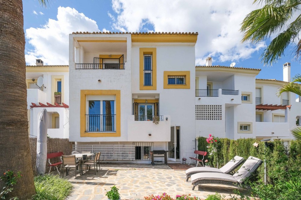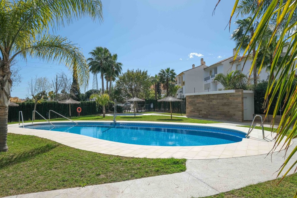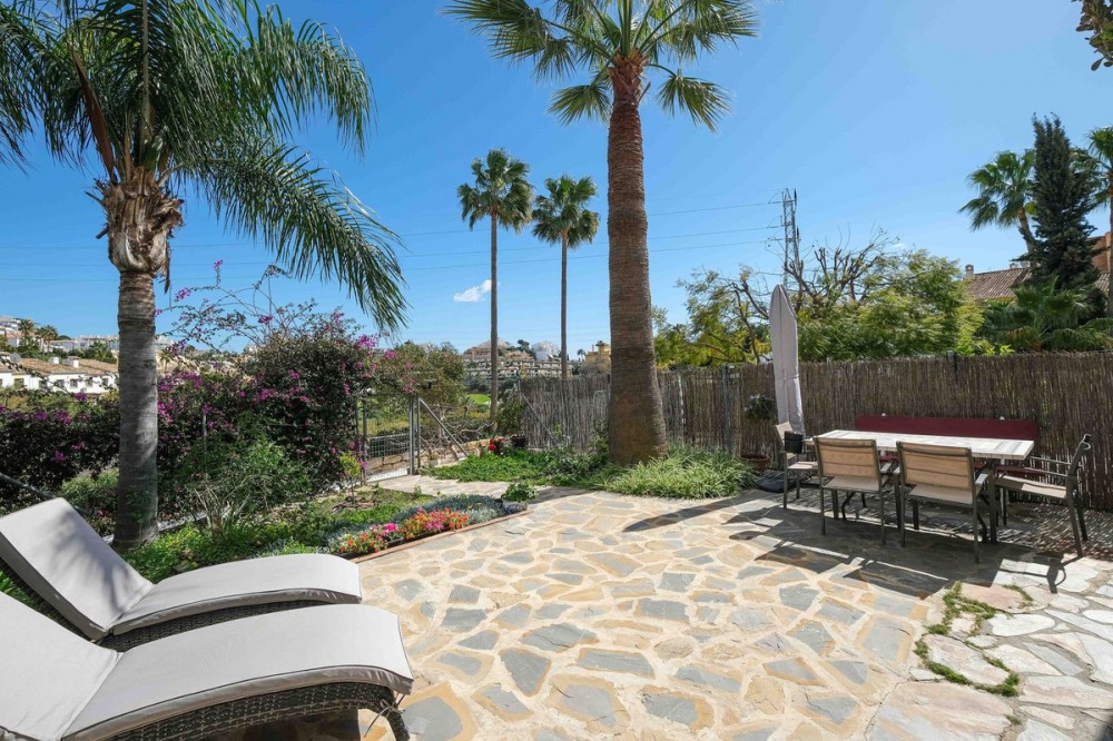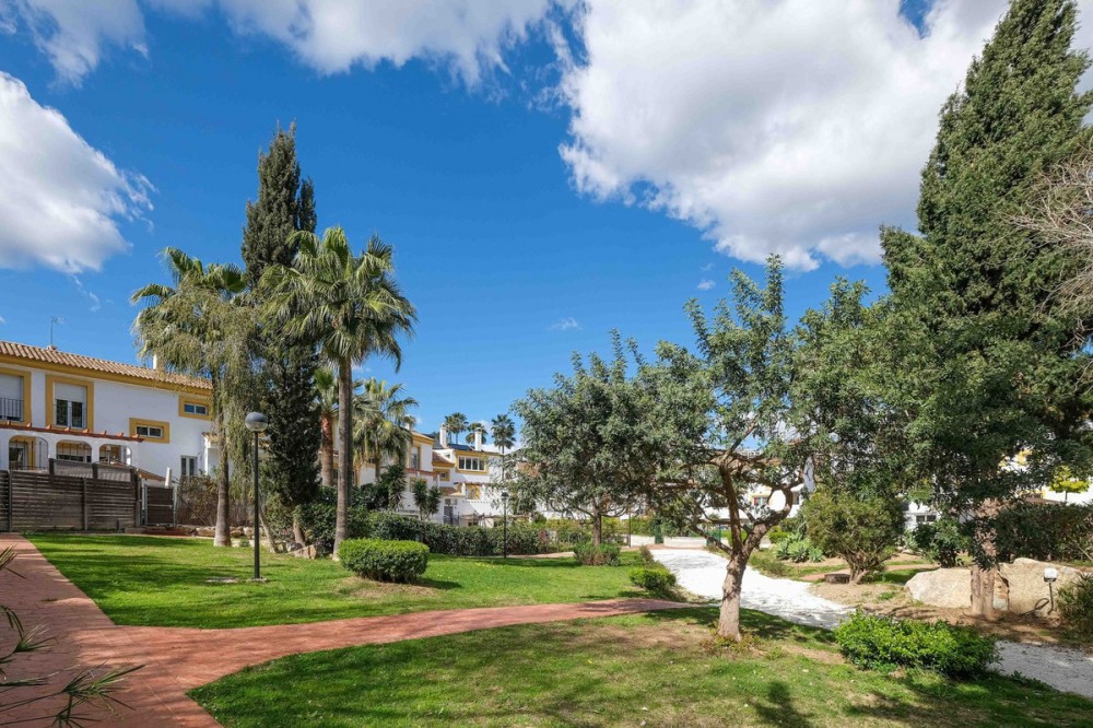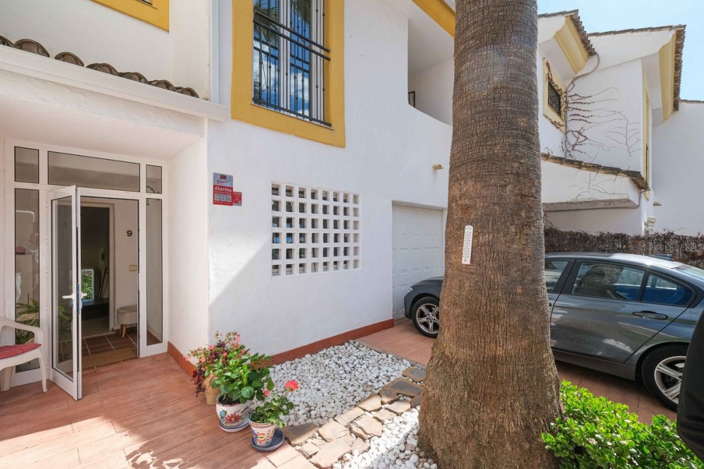 - BEAUTIFUL FAMILY HOME This beautiful family home has a built area of 155m2 + 60 m2 basement (total 215 m2) and a private plot of 198 m2, beautiful and well maintained community garden area with swimming pools for adults and children, The house comprisess of a spacious living room with balcony, kitchen and utility room, guest toilet and garage, upstairs 3 bedrooms and 2 bathrooms, one of the bedrooms has a en-suite bathroom with shower and toilet, two bedrooms have balconies, one has a french balcony, built-in wardrobes, lovely and beautiful open golf and gardens views, private courtyard with barbecue, lounge chairs and dining table, private garage and an additional parking space, close to the prestigious Miraflores Golf Course and Miraflores Tennis Club, two minutes driving to the beach, one minute driving to the amenities, supermarket, bars and restaurants.