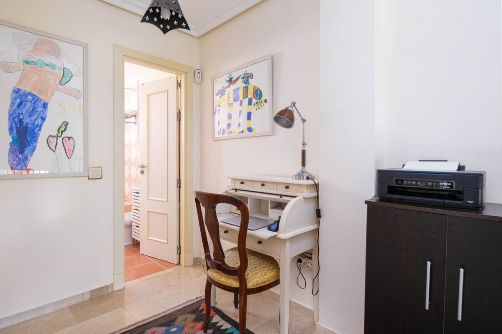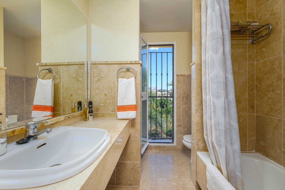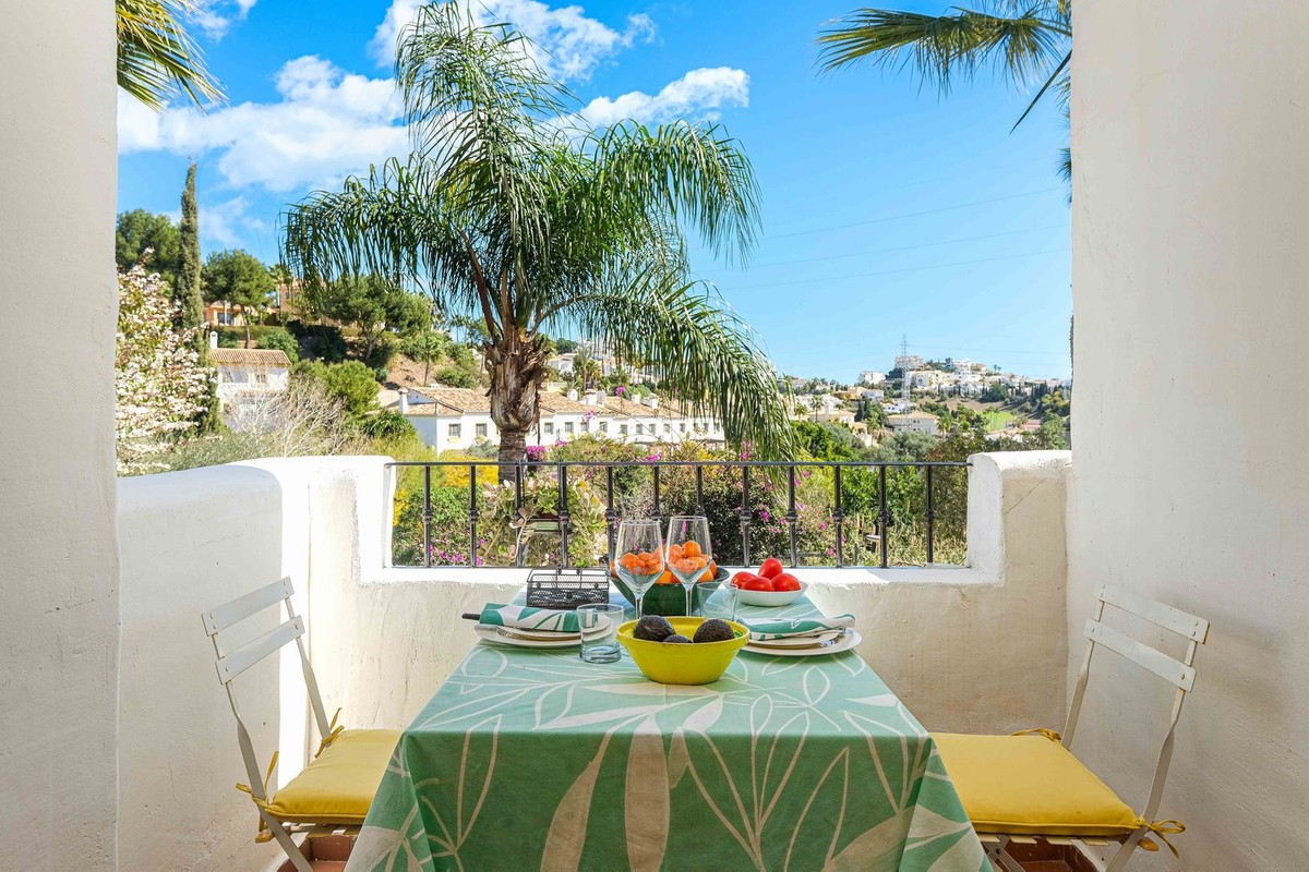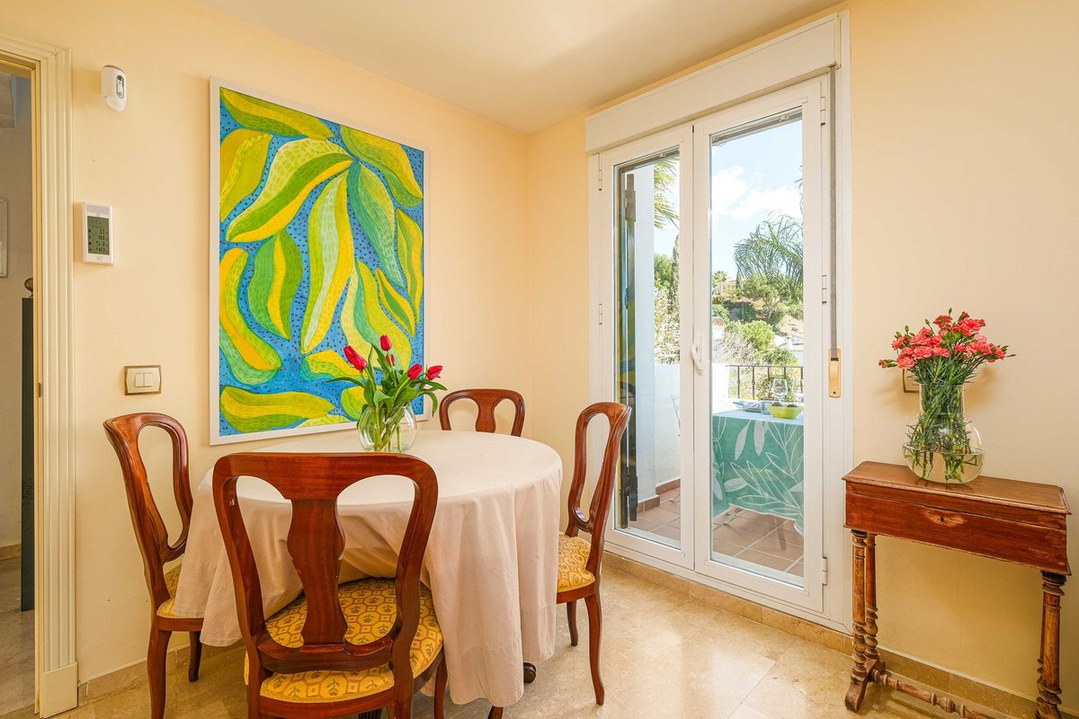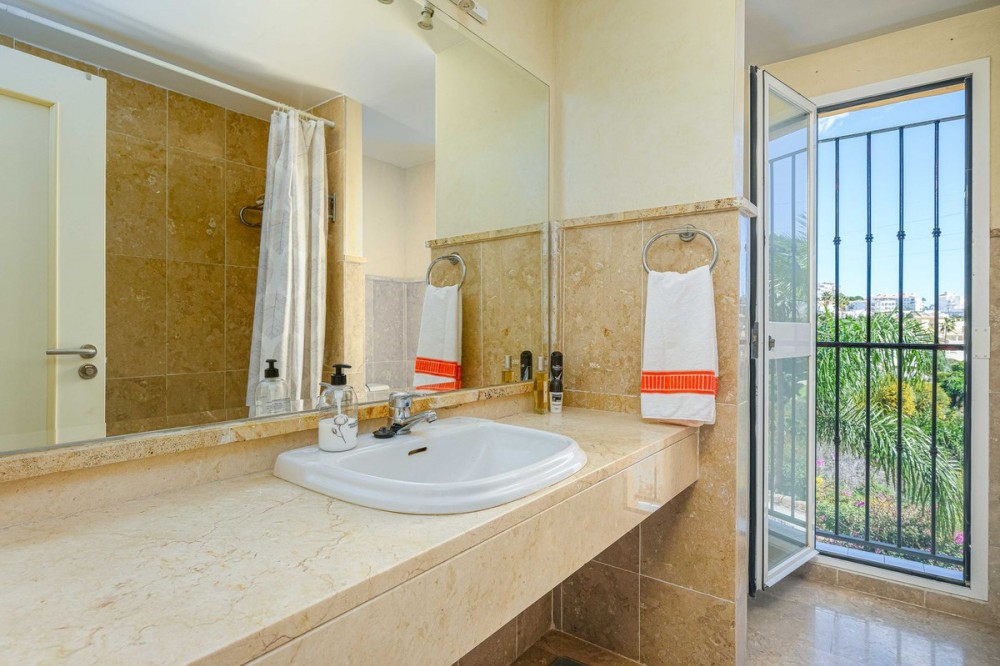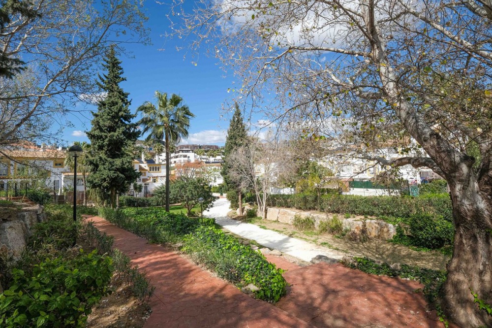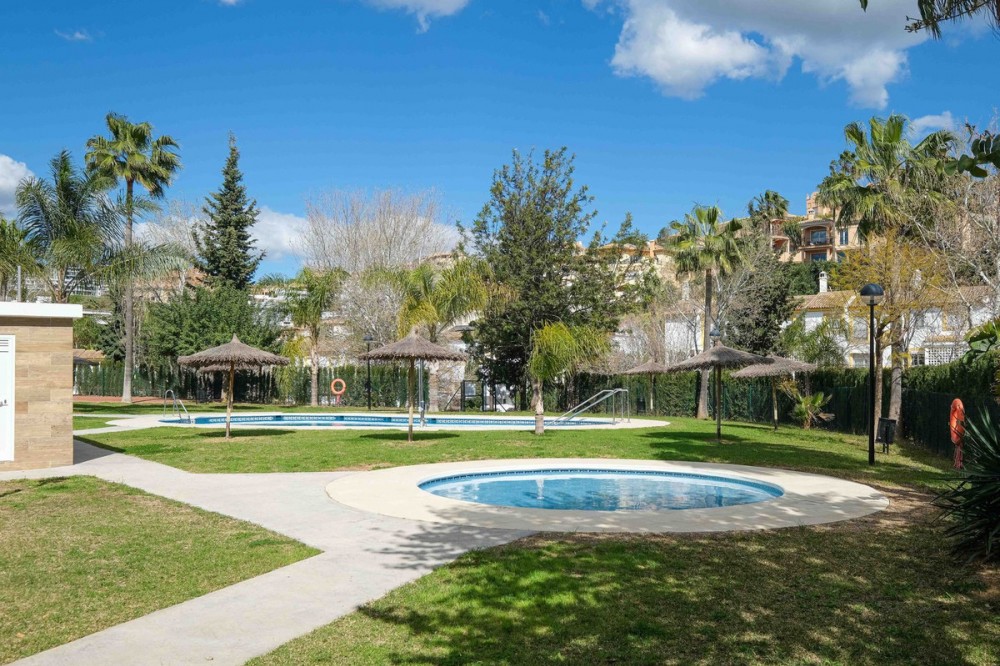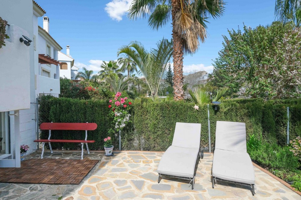 - BEAUTIFUL FAMILY HOME This beautiful family home has a built area of 155m2 + 60 m2 basement (total 215 m2) and a private plot of 198 m2, beautiful and well maintained community garden area with swimming pools for adults and children, The house comprisess of a spacious living room with balcony, kitchen and utility room, guest toilet and garage, upstairs 3 bedrooms and 2 bathrooms, one of the bedrooms has a en-suite bathroom with shower and toilet, two bedrooms have balconies, one has a french balcony, built-in wardrobes, lovely and beautiful open golf and gardens views, private courtyard with barbecue, lounge chairs and dining table, private garage and an additional parking space, close to the prestigious Miraflores Golf Course and Miraflores Tennis Club, two minutes driving to the beach, one minute driving to the amenities, supermarket, bars and restaurants.