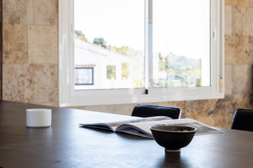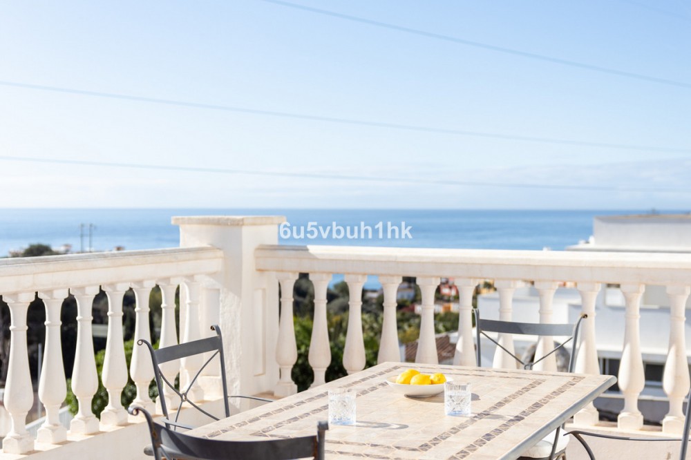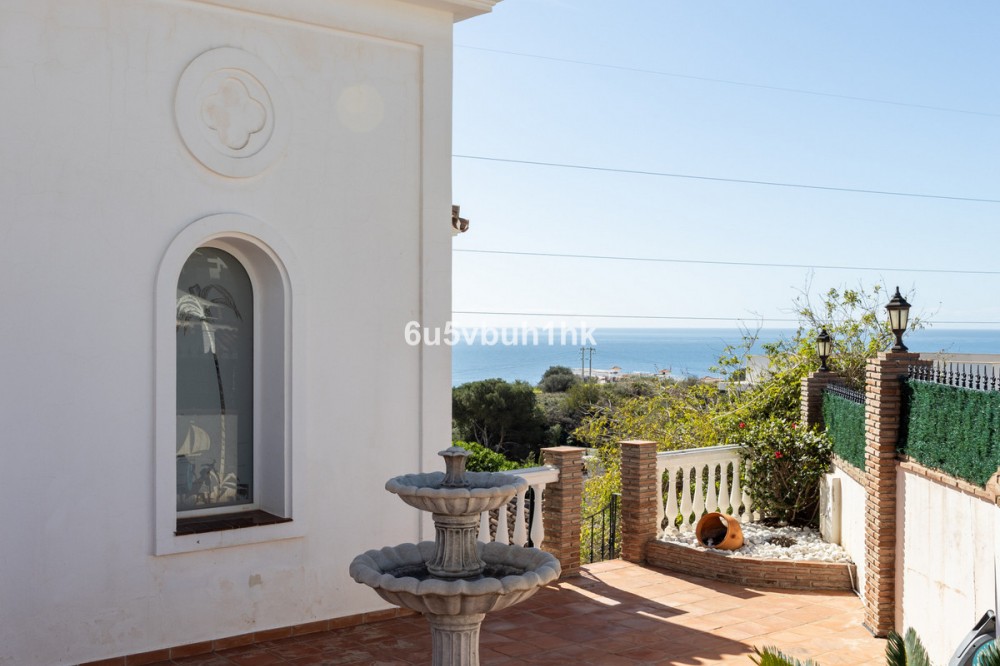 - La Capellanía is famous detached house area in Benalmádena, Costa del Sol. Here we have this nice and modern villa with great and open views of the Mediterranean Sea and the surrounding area. The location is excellent, as the sandy beaches of Benalmádena and Fuengirola are close by, and the house has good transport links to services in the surrounding area. The detached house is on its own 710 m2 plot. The villa has a size of 255 m2 and has been thoroughly renovated in 2020. Upstairs there is a spacious and bright living room and open kitchen, a spacious terrace and a guest toilet. The entrance is from a quiet street on the upper floor and there is a private garage in the courtyard. The second floor has three bedrooms and two bathrooms, one of which is connected to the master bedroom. All bedrooms have access to a large terrace. Downstairs there is another 54m2 room and a kitchen, which can be used to make a separate apartamento. On the same level is the garden and swimming pool area, which also has a view of the Mediterranean Sea. All rooms have air conditioners hot/cold.