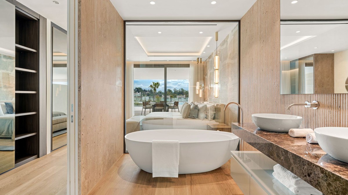 - We are pleased to introduce this luxurious ground floor duplex apartment with stunning sea and mountain views in the prestigious EPIC Marbella complex, Phase 2. EPIC Marbella is divided into three phases, featuring 56 residences designed by the renowned FENDI CASA, offering sophisticated architecture and interior design. The apartments boast fantastic views of the Mediterranean Sea and the iconic La Concha mountain. Located in the heart of Marbella’s famed Golden Mile, EPIC Marbella provides a cosmopolitan haven for those seeking a uniquely exclusive lifestyle. The property spans two levels. On the ground floor, the entrance leads to the living area with an integrated kitchen. To the right, you'll find the master bedroom with an en suite bathroom, direct access to the terrace, and communal areas. The rear of the apartment includes double bedrooms with en suite bathrooms and a guest toilet. The underground level features a spacious living area, a second living room with a cinema and TV room, a fourth bedroom with an en suite bathroom, an entrance from the parking area, and a laundry room.