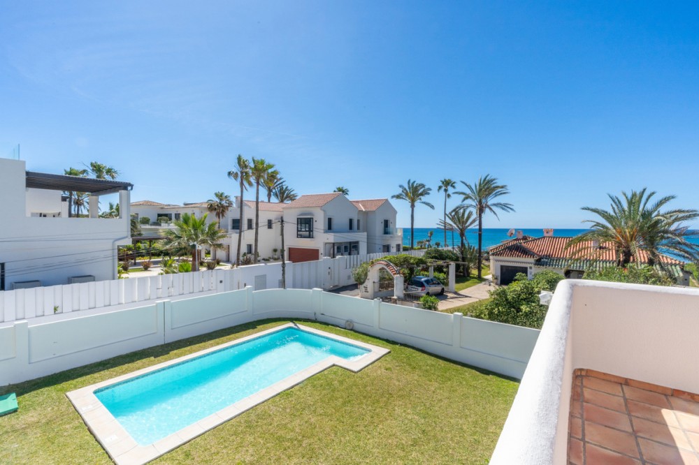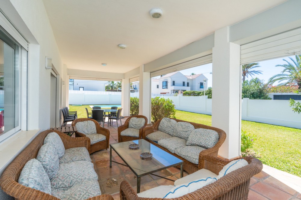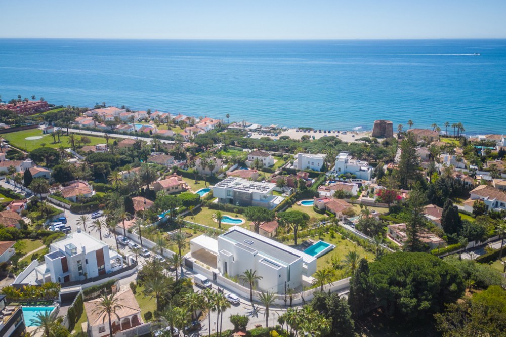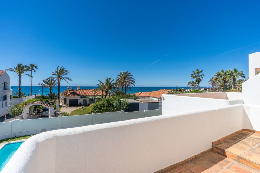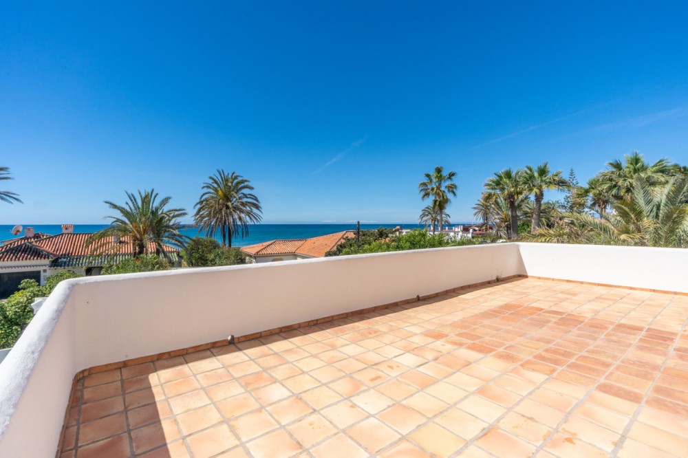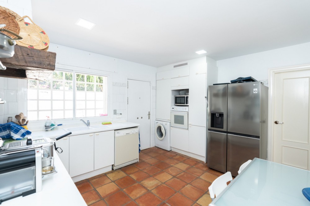 - Fabulous Villa for sale in one of the most sought after areas of Marbella East, Marbesa. Built with a modern design for its time, this villa is one of the few remaining on the Costa del Sol that maintains the refinement of classic Marbella luxury. Perfectly kept in every detail, this villa with more than 346 m2 built, is distributed on two floors and set on a plot of 755 m2, the main floor has a large living room with dining room, separate kitchen with backyard and a large pantry, two bedrooms with en suite bathrooms and maid''s room with bathroom. The well-kept garden which is accessed by a large covered terrace and the salt water swimming pool, as well as the parking for three vehicles, are a perfect complement for this Villa. On the first floor there are two bedrooms with en-suite bathrooms and the master bedroom which has an office, an entrance hall, a complete en-suite bathroom and a spectacular terrace with spectacular views of the coast and the surrounding mountains. Located in the same street you will find 5 beach restaurants. Nearby 2 supermarkets, the marina of Cabopino and the Nikki beach club. This villa with a marked character both in its design and its distribution, is the perfect property for not having to make large outlays in its updating, with small details of modernization you will have the best property in Marbesa. One of the most established areas in Marbella East is Marbesa, a peaceful seaside residential zone first developed in the 1960s. Its leafy streets and peaceful roads are largely devoid of passing traffic, serving a residential area of villas, townhouses and apartments that span the range from compact to large. TWO LEVEL VILLA WITH SOLARIUM A FEW METRES AWAY FROM THE BEACH 15-MINUTE DRIVE TO MARBELLA CENTRE 20-MINUTE DRIVE TO FUENGIROLA SPACIOUS LIVING ROOM AND COVERED TERRACE TERRACOTTA FLOORING THROUGHOUT SOLAR PANELS