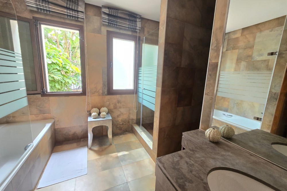 • This charming villa is located in Las Brisas, it rests on a large plot with views of La Concha, the property is distributed over three floors, on the main floor the hall leads to the living room, the open kitchen will allow you to enjoy with family and friends since it offers a large space, on the same floor three en-suite bedrooms, a guest toilet and a magnificent terrace, the office on the same floor leads us through a beautiful wooden staircase to the first floor with an en-suite room , a fabulous dressing room and a charming balcony with impressive views, in the basement with access to this impressive garden we have two en-suite bedrooms, a full bathroom for guests, cinema room, garage for two cars, a small apartment, the villa It will surprise you in every stay, do not hesitate to visit your new home.