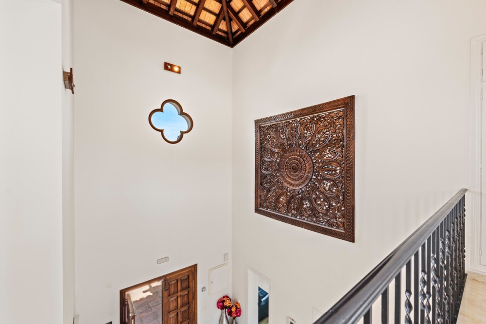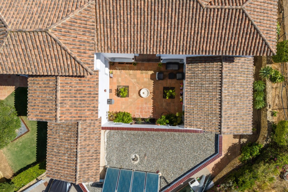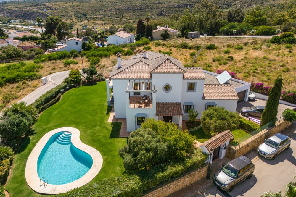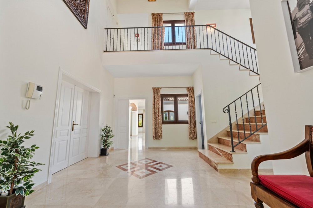 - Nestled between the prestigious Sotogrande and the picturesque La Duquesa Marinas, this stunning five-bedroom detached villa offers a luxurious retreat just a 10-minute drive from both marinas. The south-facing orientation ensures all-day sunshine and captivating views. The villa boasts a private swimming pool, beautiful tropical gardens, and an inviting interior courtyard, creating a serene and visually pleasing ambiance. Upon entering, the high-ceilinged entrance hall welcomes you into a meticulously designed interior. The expansive lounge and dining areas are thoughtfully separated, providing both spaciousness and comfort. The property features a brand-new kitchen and immaculate bathrooms on both the ground floor and in the upstairs master bedroom. For added comfort, underfloor heating is installed on both levels, complemented by a wood burner fire in the lounge, perfect for winter evenings. A spacious garage with room for two vehicles, along with a driveway accommodating an additional two vehicles, ensures ample parking space for guests. The property also includes a private gym, adding to the luxurious amenities available. With world-class 5-star golf courses just a few minutes' drive away, this residence is a golfer's paradise, combining luxury living with proximity to leisure activities. A private terrace offers an ideal space for unwinding or entertaining guests, providing the perfect vantage point to appreciate the beauty of the property's private fruit garden. This home is meticulously designed for comfort and elegance, situated close to one of the most sought-after locations, Sotogrande. An absolute must-see, unique property – contact us now!