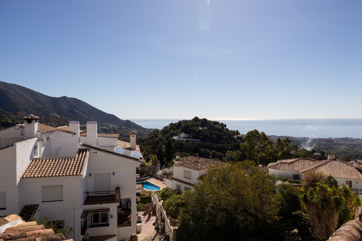 - Immerse in the enchanting landscape of Mijas Pueblo, where the sun-kissed coast meets the majestic mountains, in this stunning villa. Offering an exceptional blend of luxury and comfort, this home has four bedrooms, three bathrooms, a large living area with a cozy fireplace. The kitchen area is a perfect combination of space and functionality. And when it is time for al fresco dining with family and friends, there could not be a better spot than the picturesque inner patio with lemon and mandarin trees. Step up to the sun roof terrace, and you'll be greeted with a breathtaking vista of the sea and mountains. Enjoy the warmth of the sun as you shower in the outdoor shower or lounge with a good book. This beautiful property also features a garage for two cars, a bodega, and ample storage space. Located in the charming town of Mijas Pueblo, you'll have easy access to all the amenities you could desire, from quaint shops and restaurants to world-class golf courses and beaches. The perfect combination of relaxation and excitement, this semi-detached house is the ultimate escape. The property provides a pure touch of Mediterranean charm, while the contemporary design and high-quality finishes add a touch of luxury. Whether you're looking for a peaceful retreat or a place to entertain friends and family, this spectacular property has it all. With small changes you will create an amazing rooftop terrace with amazing sea views. Don't miss out on this once-in-a-lifetime opportunity to own a truly unique and exceptional home in one of the most beautiful parts of Spain. Contact us today to schedule a viewing and start living your dream life in Mijas Pueblo.