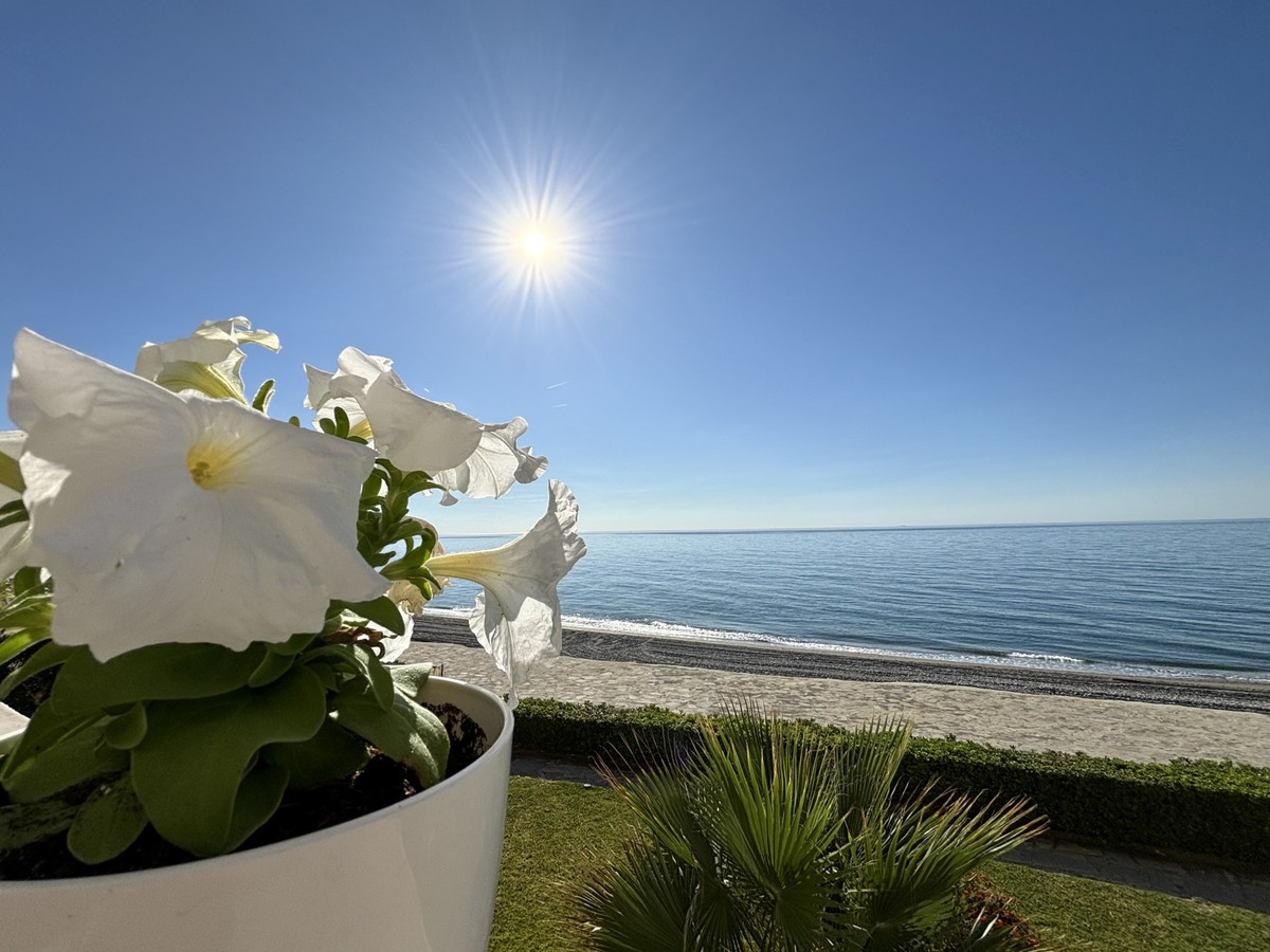- This stunning luxury duplex penthouse is located in the beautiful area of Arroyo Vaquero, Estepona West, Estepona, Malaga. Situated in a front line beach position, this property offers breathtaking sea views and direct access to the beach. With a built area of 185m², this spacious penthouse includes 2 bedrooms and 2 bathrooms. The interior of the penthouse spans 115m² and features an open and bright living room, a dining room, and a fully fitted kitchen with modern appliances. The marble floors and double glazing give the property an elegant touch. The penthouse also boasts a private terrace of 70m², which is ideal for outdoor dining, entertaining, and enjoying the stunning sea view. Additional features of this luxury penthouse include air conditioning, fitted wardrobes, a walk-in closet, and a roof terrace. The communal areas of the property include a swimming pool, a garden, and a garage. Other amenities in the vicinity include shops, restaurants, and schools, making this an ideal location for both relaxation and everyday convenience. The property is in excellent condition and is available with optional furniture. Pets are allowed, and internet connection is available through both Wi-Fi and fiber optic. With its prime beachfront location, luxurious features, and stunning sea views, this duplex penthouse in Arroyo Vaquero, Estepona is a truly exceptional property.