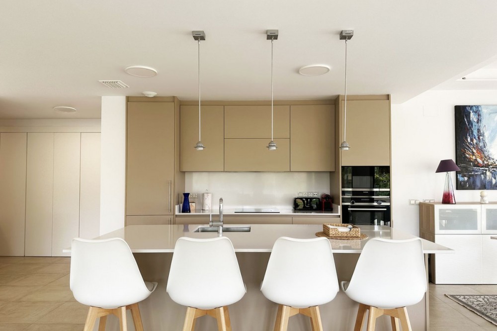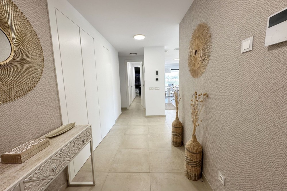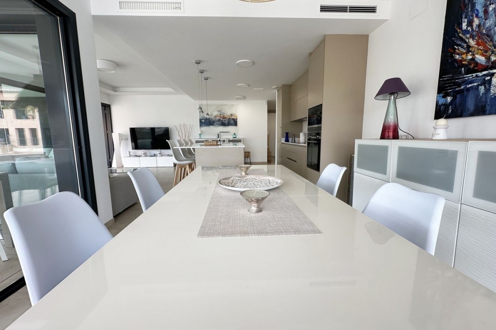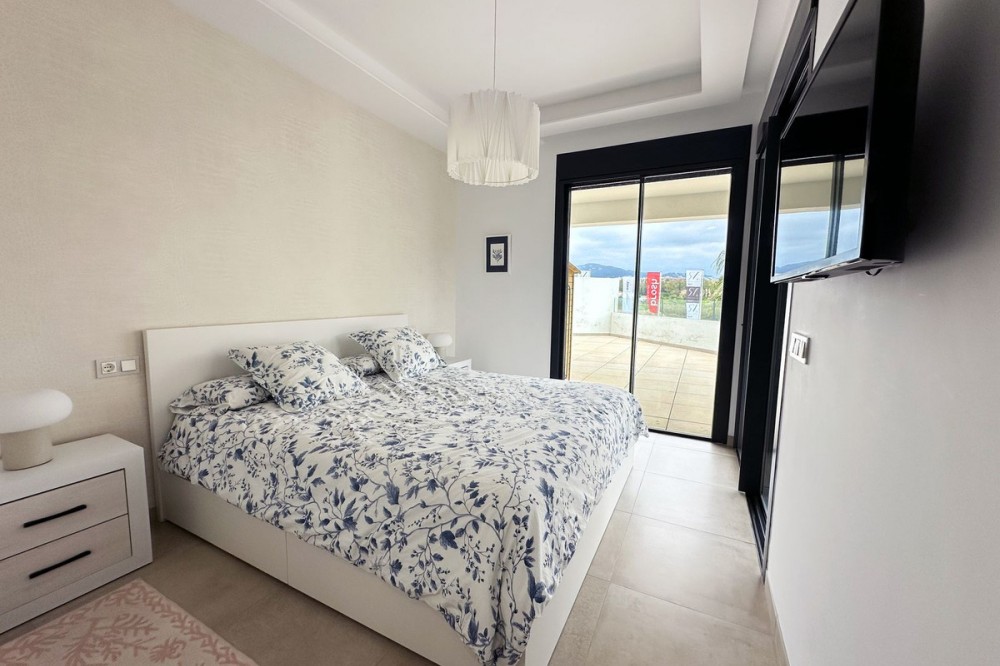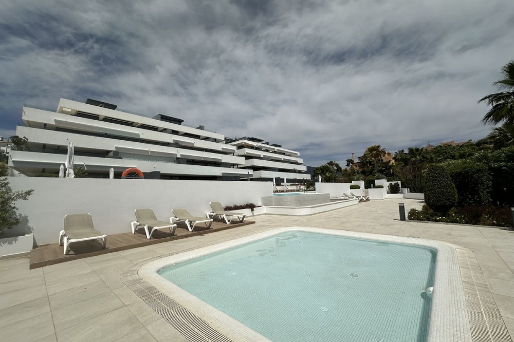 - Magnificent apartment located in the exclusive urbanization of El Campanario Hills, Estepona. It is located within a gated community of only 29 luxury apartments and penthouses, designed with a contemporary style and high-quality materials. It has a privileged location, close to important golf courses of the new Golden Mile and the beach, and with access to the A7 that allows easy access to Marbella, the city of Estepona, Puerto Banus, and Sotogrande. Gibraltar airport is about 40 minutes by car and Malaga is only 60 minutes away. Upon entering the apartment you will find a spacious living room with an open plan kitchen and dining area with floor-to-ceiling windows allowing easy access to the terrace and natural light. They include state of the art appliances and top quality finishes courtesy of the design firm Gunni and Trentino. It offers an ideal layout with 3 bedrooms and 2 bathrooms. The master bedroom is en-suite, with a private bathroom and direct access to the terrace. The hallways have ample built-in closets, offering abundant and practical storage. The spacious terrace is a perfect place for entertaining and relaxation, with a Jacuzzi to enjoy relaxing moments and a barbecue for outdoor gatherings. For convenience and control, the apartment has home automation systems that allow you to manage lights and other electronic devices easily. The Campanario Hills has a large communal swimming pool for adults and a children's pool. You can enjoy a fully equipped gym with a superior spa, including Turkish baths, a jet shower, and a relaxation area with infrared lamps.