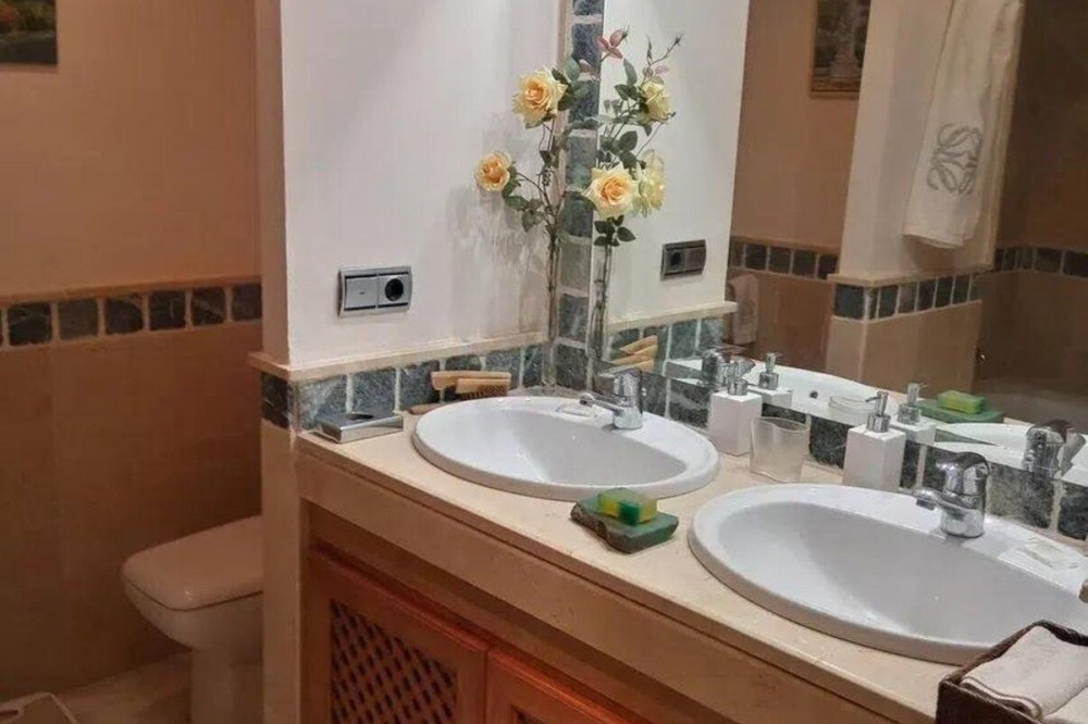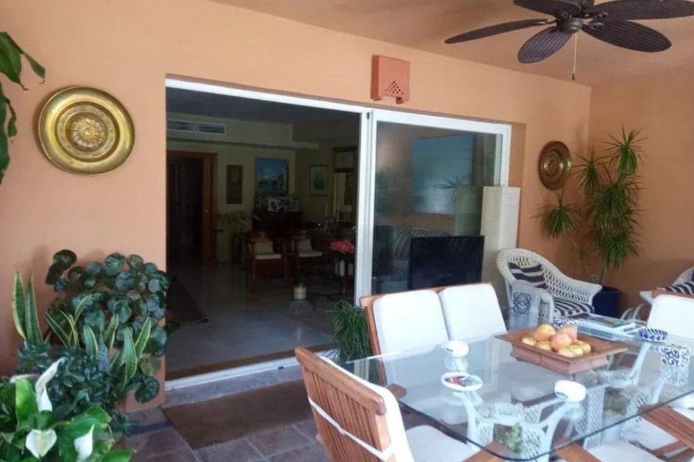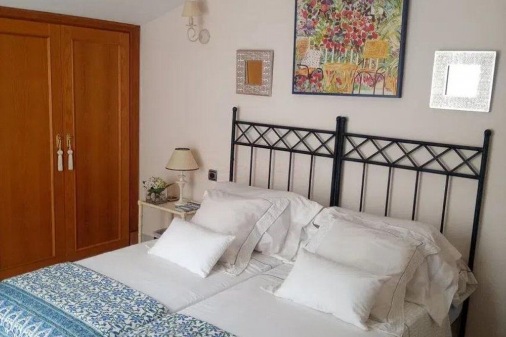 - Spacious townhouse in the Golden Mile next to the Hotel Puente Romano and the Hotel Alanda Marbella, and walking distance to the beach. The house is distributed over four levels: the main floor consists of an entrance hall, a guest toilet, a fully equipped kitchen with an office, a splendid living room with a fireplace and a large double glazed enclosure that leads to a summer dining porch with access to the garden and the private pool. A staircase takes you to the first floor where you will find the large master bedroom with a dressing area, an en-suite bathroom with a jacuzzi and a shower tray and a large private terrace, a second guest bedroom with an en-suite bathroom, a large built-in wardrobe and a private terrace. On the upper floor there is a beautiful attic bedroom, also with an en-suite bathroom, a built-in wardrobe and access to a large solarium with afternoon sun and views of the mountains surrounding Marbella such as La Concha. The semi-basement is completely open plan and has an adjoining storage room and access to the underground garage with two large parking spaces. Likewise, and through a large glass window, it has access to a chill-out porch with a staircase that gives access to the garden and pool. Finally, the large garden has some fruit trees and tropical plants that give it a very peculiar character and the possibility of enjoying the sun and its magnificent private pool. Features: 450 useful M2 East/West orientation 3 bedrooms with en suite bathroom and 1 guest toilet. DAIKIN hot-cold ducted air conditioning system, with independent on/off in bedrooms and living room. 2 terraces and 1 solarium. Large covered porch. 4 parking spaces, 2 underground and 2 outdoor. Fireplace. Electric blinds. Second hand/perfect condition. Security.