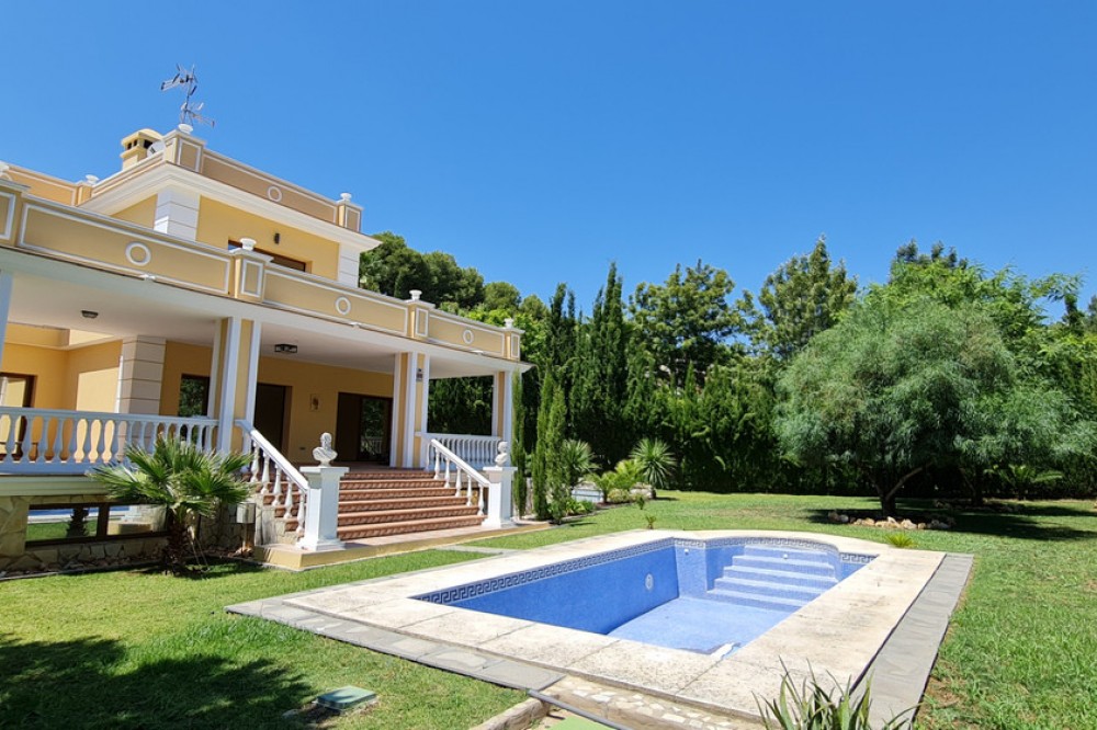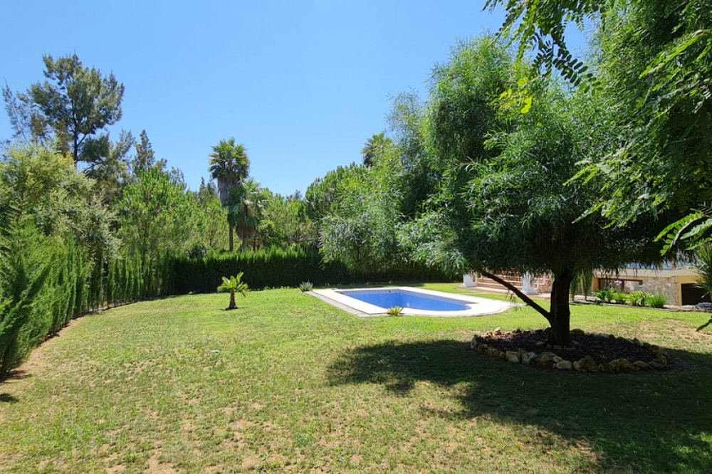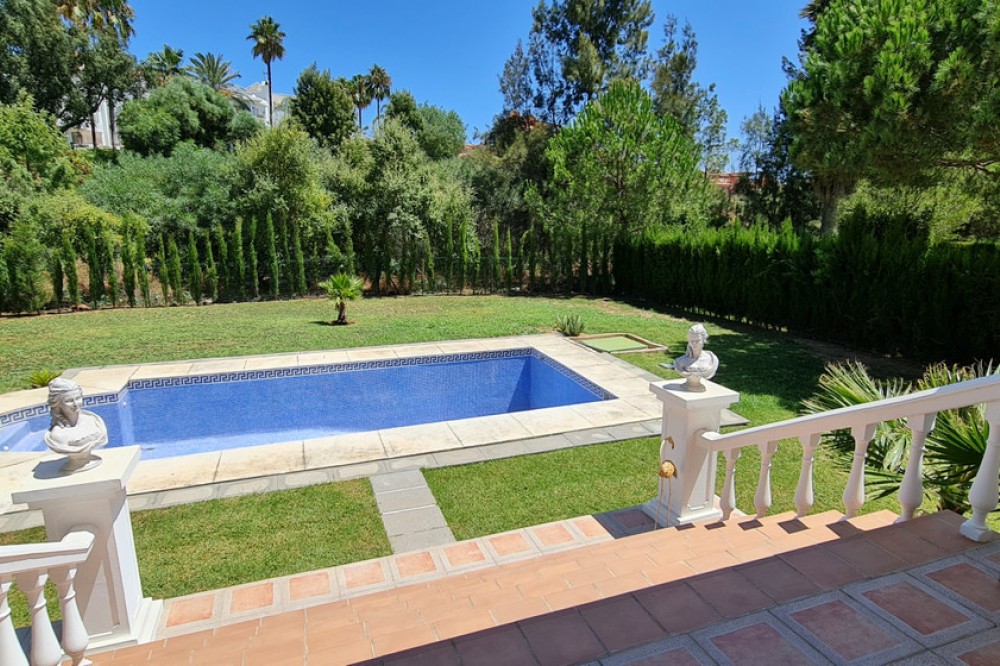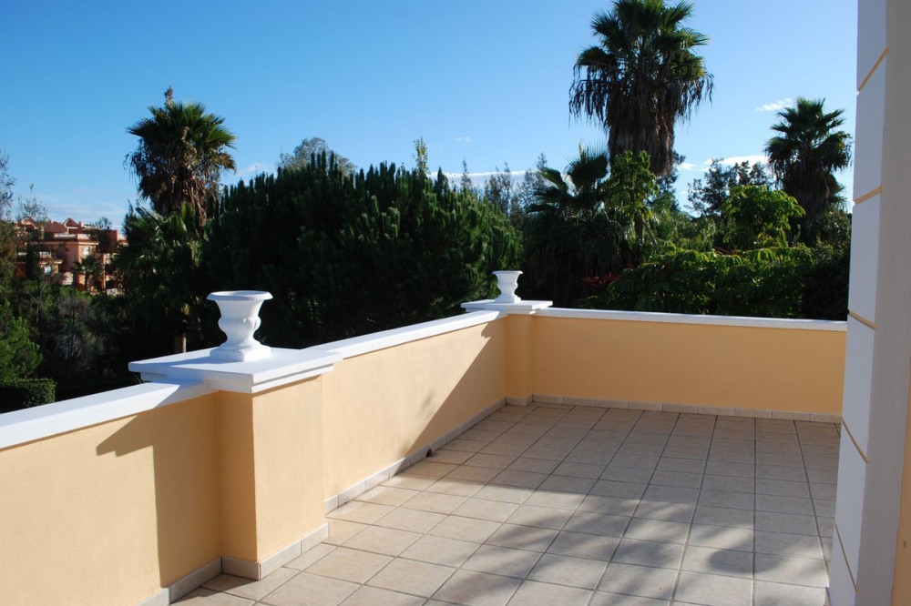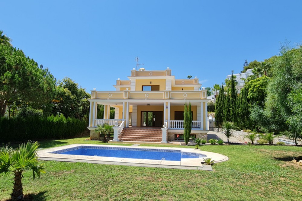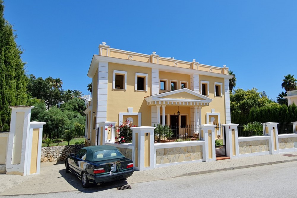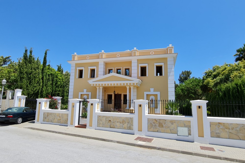- Luxury villa built on two floors plus a basement and a large garage for several cars, located in Hacienda Las Chapas, near Marbella and Malaga airport and Malaga city. Close to all services and near the beach! The villa is in perfect condition, offering four bedrooms en suite and a guest toilet. There is one bedroom en suite on the ground floor and three bedrooms with their own bathroom on the first floor. The villa has been completely renovated recently, offering an air conditioning system in all rooms and with underfloor heating in each bedroom. Large living room with access to the terrace and the garden with a pool. In addition a large and modern kitchen with all appliances. Terraces all around.