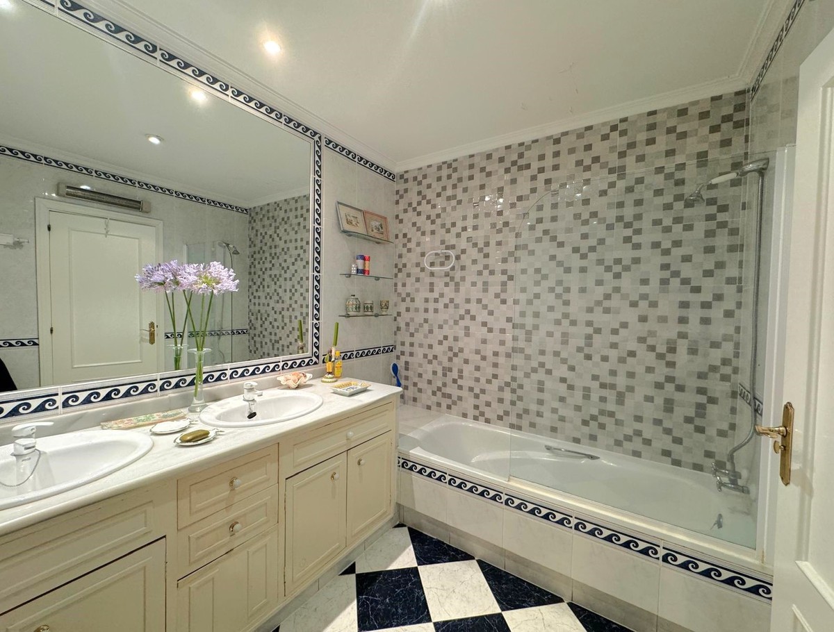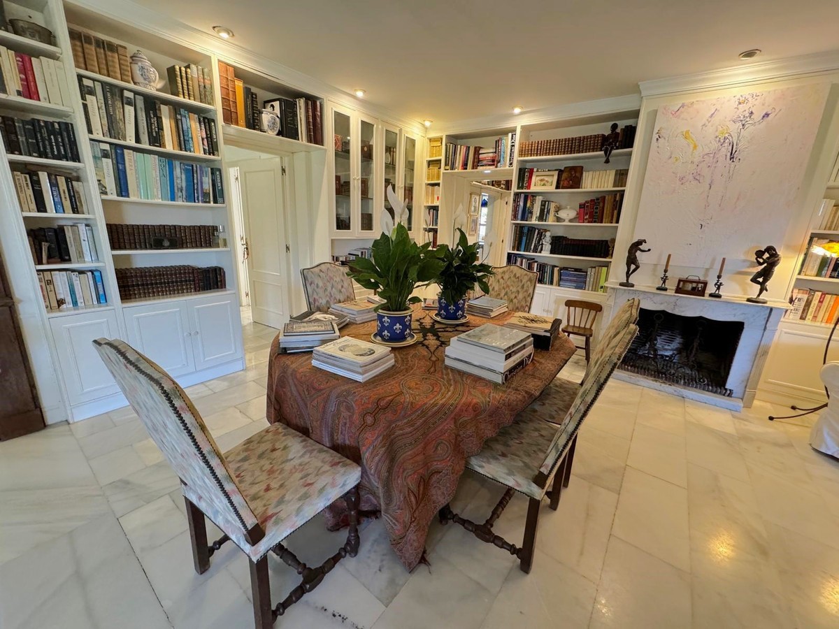 - Beautiful family villa with a lot of charm located on the second line of the beach the well established urbanisation Linda Vista Baja, San Pedro de Alcántara. Built on a single floor, on a beautiful plot it has a very nice mature garden, with tropical plants and fruit trees. Due to its magnificent position, it is a very interesting renovation proyect. Just a few minutes walk to all kinds of services such as restaurants, international schools and shops. South facing, with beautiful views of the sea and to the mountains from the roof terrace. It consists of: cozy covered porch very privated with views to the garden. Spacious living room with dining area and fireplace, large fully equipped kitchen with breakfast area and laundry room. In total there are 6 double bedrooms with built-in cupboards + 1 maid's bedroom and 3 bathrooms. The master bedroom is very spacious with its en-suite bathroom and office. Maid's room with shower room. On the East side of the house, there is a very cozy patio, ideal as a summer dining room for the whole family covered with awnings. Private garage and outdoor parking area for several cars. Air-conditioning. Solar panels.
