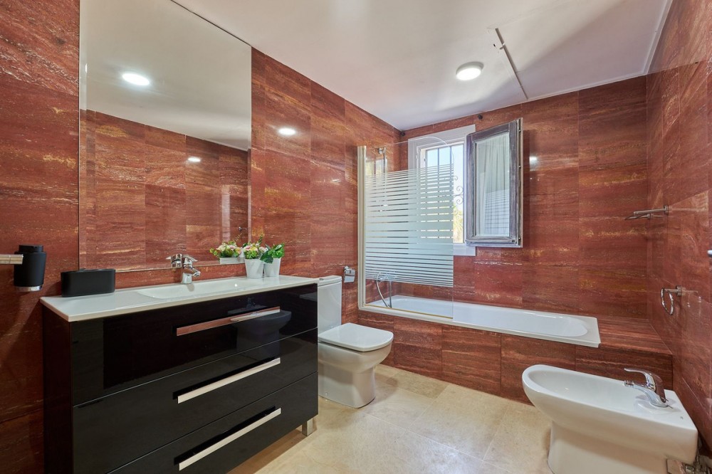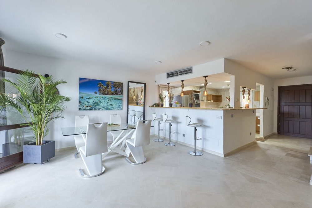 - Live your best life in Marbella's Golden Mile Just 100 meters from the world-famous Marbella Club Hotel and 400 meters from the beach, this Semi-Villa is situated in the heart of Marbella's luxurious Golden Mile. Step outside your door to indulge in the opulence of Puente Romano's Michelin-star restaurants, world-class tennis courts, and Marbella's sandy beaches. Marbella’s most renowned Michelin-starred seafood restaurant is just 50 meters away, with other Dani García establishments within walking distance. The villa is also conveniently located within a five-minute drive of Puerto Banus and Marbella's Old Town. Nestled in a small community with expansive grounds, this three bedroom + bonus room, plus a self contained suite, Semi-Villa features a double-length swimming pool, a paddle court, and stunning views of both the sea to the south and La Concha mountain to the north. Inside, you’ll find marble floors, central air conditioning and heating, a high bar, and a terrace perfect for entertaining guests. The property includes two underground parking spaces and a storage room. Golf enthusiasts will appreciate being within a ten-minute drive of three of Costa del Sol's best golf clubs: Aloha, Las Brisas, and Los Naranjos. Additionally, the British International School of Marbella is just four minutes away.