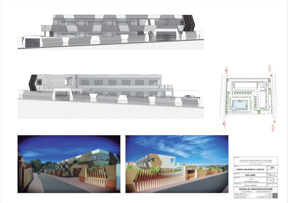 - Unique project of an exclusive aparthotel in Estepona located on the plot of 3434m2. Possible to built an aparthotel of 838m2 with 2 storeys, 28 apartments, restaurant, swimming pool and underground parking. It is also allowed and possible to build 3 villas on this plot! Great location, close to town, supermarkets, amenities and the Playa don Pedro beach. Nearby are also several golf clubs, such as Santa Maria Golf, Valle Romano and Estepona Golf. Project with a modern, up-to-date design done by a professional architect. A sensible investment which will bring a good profit.