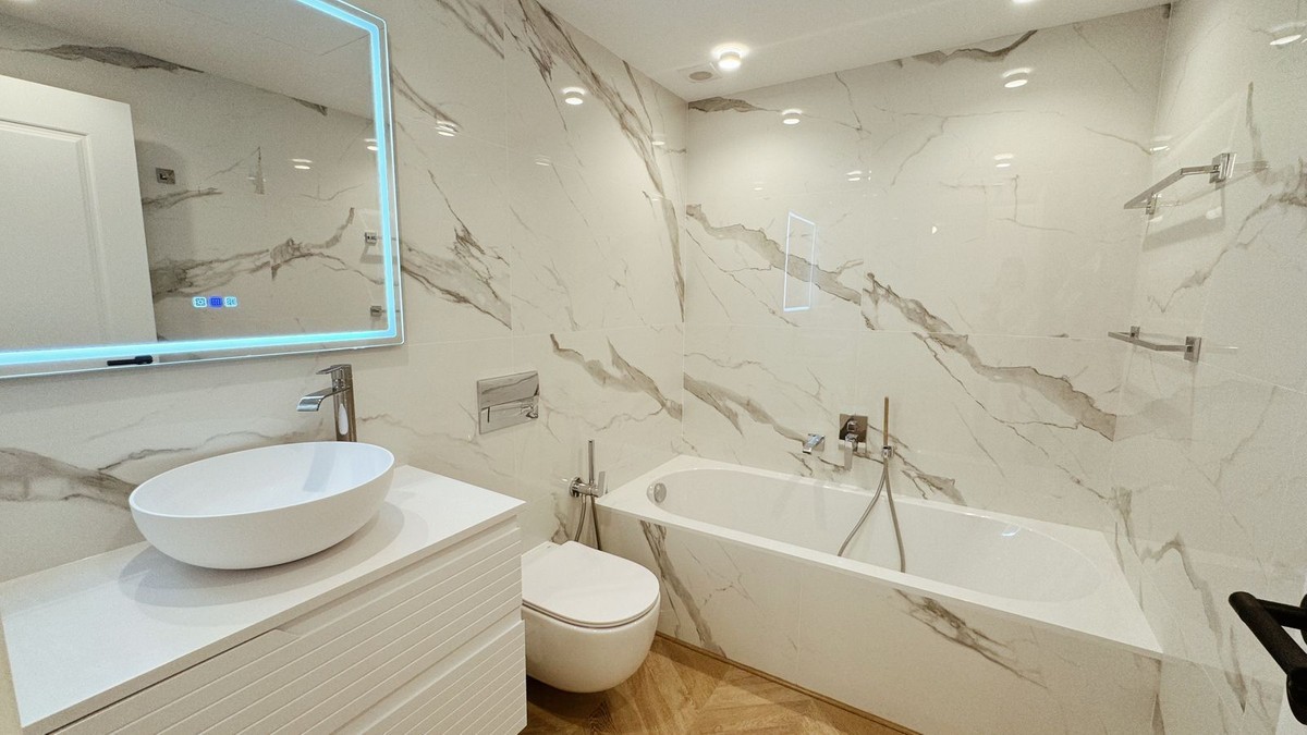 - A magnificent apartment for sale in the prestigious residential complex, located on the first line of the sea. This spacious property includes three bedrooms and two bathrooms, ideal for comfortable living. The apartment has been recently renovated and is decorated in a modern style using high-quality materials and stylish design solutions. Key features of the apartment: Location: First line of the sea, offering incredible sea views and easy access to the beach. Area: Spacious rooms that allow for a cozy and functional environment. Bedrooms: Three cozy bedrooms with large windows that fill the rooms with natural light. Bathrooms: Two modern bathrooms equipped with the latest plumbing and elegant finishes. Interior: Recent renovation in a modern style, with a design considered according to the latest interior trends. Complex: Prestigious residential complex with well-maintained grounds, a swimming pool, green areas, and 24-hour security. This apartment is the perfect choice for those who value comfort, style, and a privileged location. Living here, you will enjoy all the benefits of coastal living in one of the most beautiful places. Parking space № E11, storage room №10