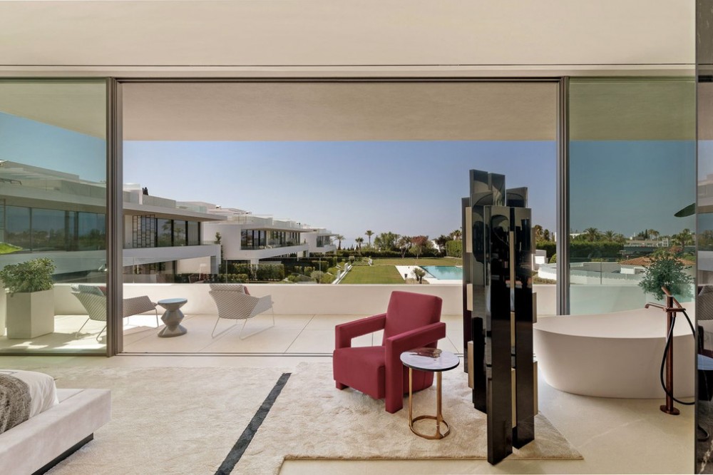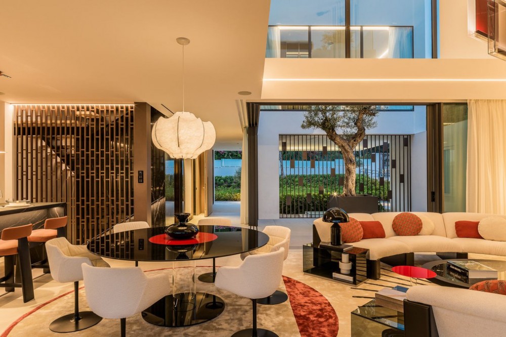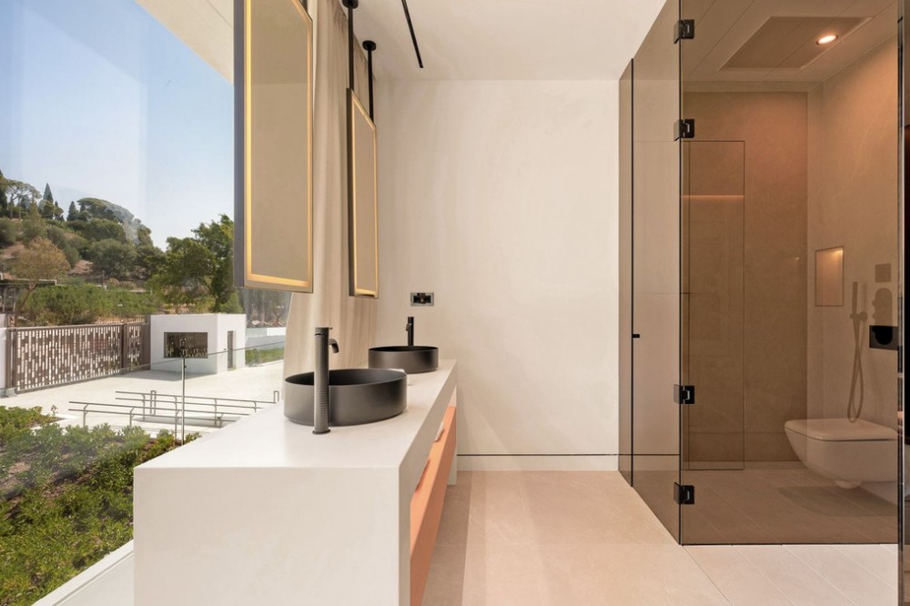 - We are delighted to present this stunning new villa to you. Unmatched Architectural Brilliance and Exquisite Design Nestled within this prestigous community, this home is a stunning residence offering an unparalleled living experience in Marbella's most exclusive address. Designed by the best architect and fully furnished by the esteemed Pedro Peña, this villa epitomizes luxury living. Spanning four meticulously crafted floors, all seamlessly connected by your private elevator, Villa Number 9 showcases unmatched architectural brilliance. The expansive living room, with its dramatic double-height ceiling, creates a grand and airy atmosphere perfect for entertaining. This space effortlessly blends into a beautifully designed terrace, maximizing the indoor/outdoor lifestyle. Additionally, the interior patio, featuring a majestic mature olive tree, fully opens to extend the already spacious living area, enhancing the fluidity and openness of the home. The sleek, state-of-the-art Gaggenau kitchen is a luxury in itself, equipped with a vacuum sealer, steam oven, conventional oven, plate warmer, and wine fridge—a testament to both functionality and sophistication. The villa’s four bedrooms are thoughtfully designed for privacy and tranquility. On the first floor, you’ll find the luxurious master suite, complete with a large walk-in wardrobe, an integrated luxury bathroom, and a generous terrace offering breathtaking sea views. Also on this level are two additional guest bedrooms, each featuring custom Poliform wardrobes for ample storage and an elegant touch. The fourth bedroom, located in the basement, benefits from natural light, making it a bright and inviting space ideal for guests or as a private retreat. Every one of the four bathrooms is elegantly designed with high-end fixtures and fittings and stunning marble details, ensuring a sophisticated and functional space. The rooftop terrace is an entertainer's paradise, featuring an outdoor kitchen, a private pool, and a top-of-the-range projector that transforms the space into a captivating open-air cinema at night. Every detail in this villa speaks of the highest possible quality and luxury, from natural oak wooden doors to a high-end domotic system. The villa’s interior is meticulously crafted by Pedro Peña, who has sourced the finest furniture and materials for this unique project. Experience ultimate comfort with hot and cold air conditioning, underfloor heating throughout, a built-in sound system, and the convenience and security of fingerprint access. For added convenience, the property includes private underground parking spaces with ample room for four large cars. The community is fully gated and offers on-site security, ensuring a safe and exclusive environment for its residents. Enjoy stunning views of the Mediterranean Sea and La Concha Mountain from every floor, creating a serene and picturesque living environment. This home provides a luxurious community experience with a vast open space, a large communal swimming pool, and a plot size of 12,000m², offering a unique feeling of freedom and luxury. This exceptional villa is perfect for those seeking a luxurious lifestyle while enjoying the finest services and amenities.