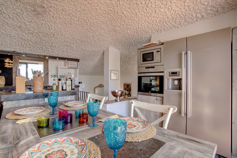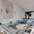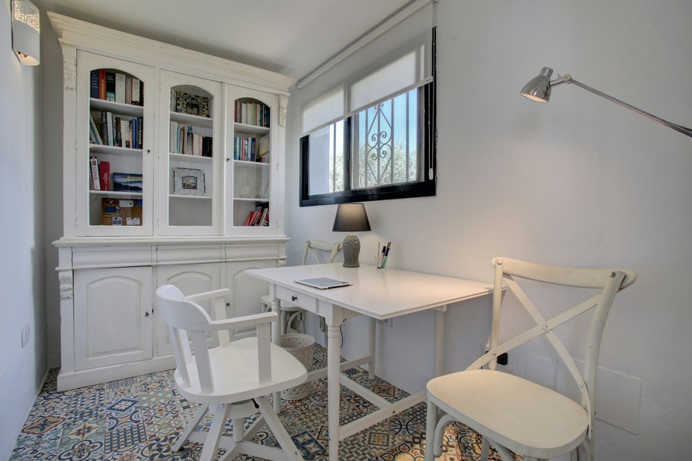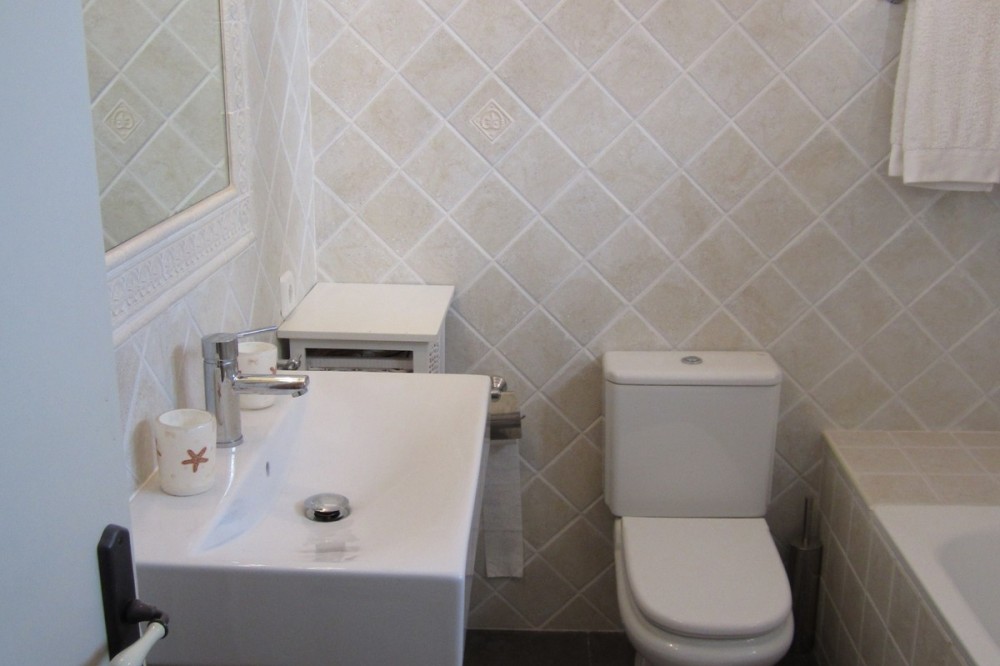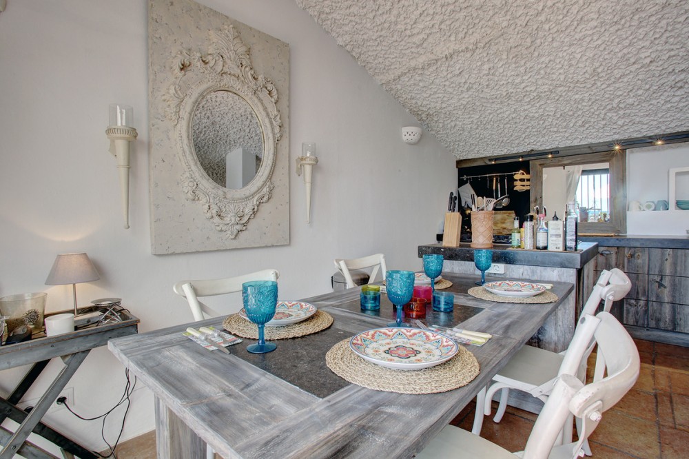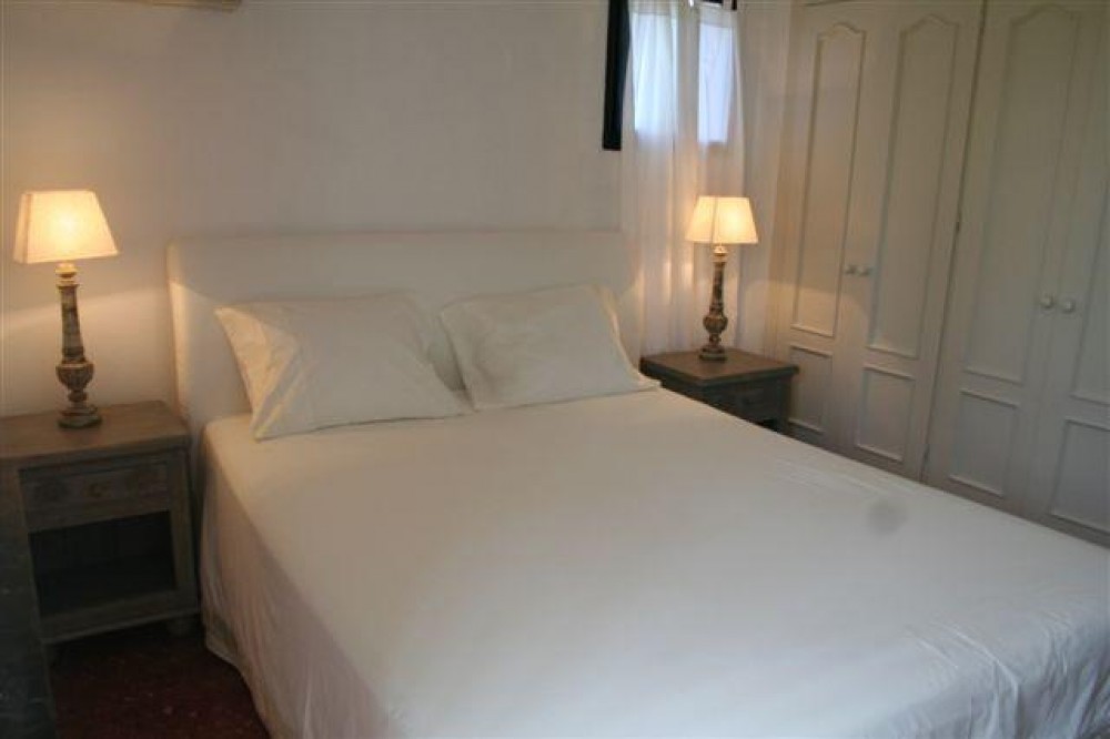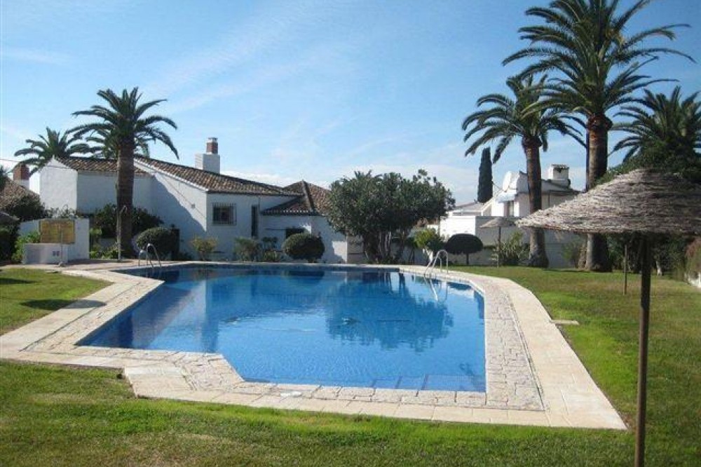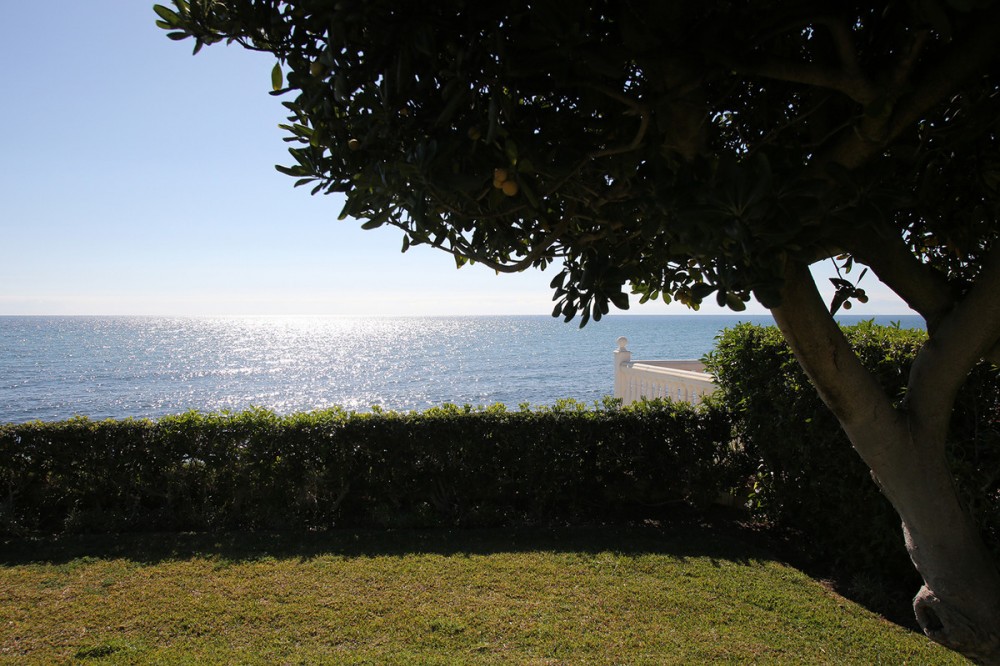 - Very charming 3 bedroom / 2 bathroom townhouse with spectaculaire sea view in a securely gated beachfront resort with a large communal pool, subtropical gardens and direct access to the beach (only 50 steps to the beach!). The resort was built in 1969 and is located at the entrance (East) of Estepona, near the Palacio de Congresos and the large Supermercado Carrefour. The house has a private garden and a large terrace (50m2)with a lounge area, a built-in BBQ and a large dining table. From the terrace you have a wonderful view overlooking the Mediterranean sea. The fully fitted (new) kitchen is well equipped with American fridge/freezer, oven, microwave, 5 ring stove and dishwasher. The split level living-room has a seating area with a fire place and a flat screen TV, plus an office corner. All bedrooms have airconditioning and have direct access to the private garden. The Carrefour, several beachbars, a fresh bakery, a pharmacy, a hairdresser are all within short walking distance. Estepona old town is a 15 min walk. Popular places like Puro Beach club, Puerto Banus, Los Flamingos Golf Club, Marbella are all within a 5 - 15 min drive.