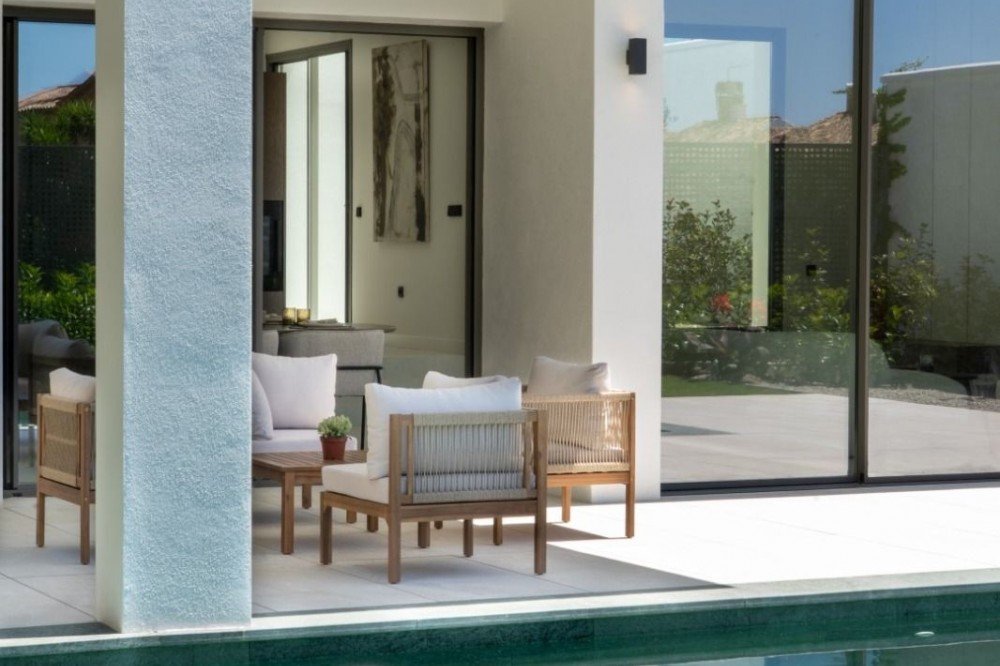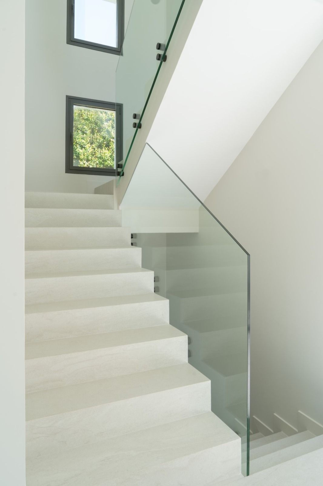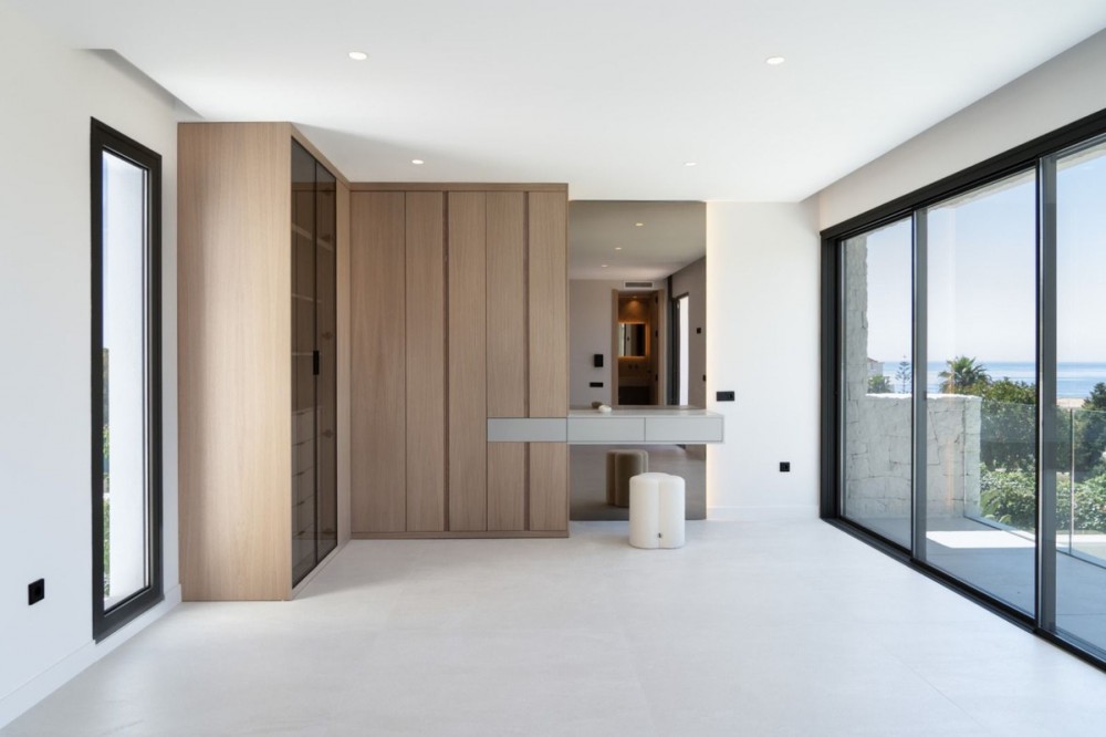 - We present you a spectacular luxury villa in Estepona, ideal for those who value comfort, bright spaces and sustainability. This architectural gem WITH SPECTACULAR VIEWS OF GIBRALTAR; is distributed around a double-height main volume and extends over three levels: ground floor, upper floor and basement. This home offers a sophisticated and functional design that will make you fall in love from the first moment. On the ground floor, you will find a welcoming entrance hall, cloakroom, en-suite bedrooms with bathroom and dressing room, a dream kitchen-dining room, a spacious living room and a main porch that opens onto a magnificent outdoor skimmer pool with pre-installation for a heat pump. The upper floor houses the master bedroom with the option of converting the second bedroom into a library and a terrace to enjoy the views. The basement is presented raw, except for the machine room, offering a blank canvas to personalize to your liking. The villa has an outdoor parking area, a porch and solarium area, as well as a garden with programmed automatic irrigation and programmed lighting. Equipped with TV/FM antenna, digital video intercom, air renewal system and air conditioning installation in the basement, every detail has been carefully thought out for your comfort.