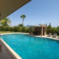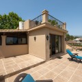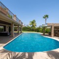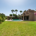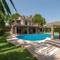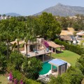 - This private villa, situated in the heart of the prestigious Golden Mile, offers a rare combination of luxury and convenience. Surrounded by some of the most exclusive urbanizations, this residence is just a few minutes' walk from the beach, upscale amenities, boutique stores, gourmet restaurants, and the iconic Puente Romano Hotel. As you enter the villa, you're greeted by a welcoming entrance hall that seamlessly flows into a spacious living room. Adjacent is a fully equipped Bulthaup kitchen with state-of-the-art Gaggenau appliances, perfect for culinary enthusiasts. Both the living room and kitchen have direct access to a charming terrace and a beautifully landscaped garden with a pool, creating an idyllic space for relaxation and entertaining. The first floor also includes a guest toilet, a well-appointed bedroom with an en-suite bathroom and dressing room, and the master suite. The master bedroom is a sanctuary, featuring a cozy fireplace, an en-suite bathroom, a large dressing room, and floor-to-ceiling windows that open onto the terrace and garden, filling the space with natural light. The upper floor is dedicated to another luxurious master bedroom, complete with an en-suite bathroom, an expansive dressing room, and access to a private terrace with stunning sea views. From this terrace, you can ascend to the solarium, where panoramic views of the Mediterranean create the perfect backdrop for enjoying the serene surroundings. There is a possibility of extending by 80m2. The plot is exceptionally private, offering unmatched tranquility despite its central location. This unique property is not only ideal for a family home but also presents significant investment potential, thanks to its high profitability in holiday rentals. Moreover, there is an opportunity to expand the villa by approximately 80 m², as the buildability of the plot has not yet been fully utilized. The villa's location is truly unbeatable, especially as the area is undergoing significant revaluation. The development of four luxury projects nearby, along with recent infrastructure improvements such as new roads, a children's park, a pedestrian area along the river, and a large parking facility, make this property an exceptional investment in a rapidly appreciating neighborhood.